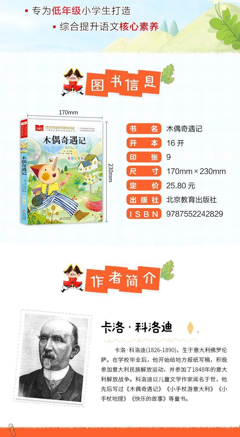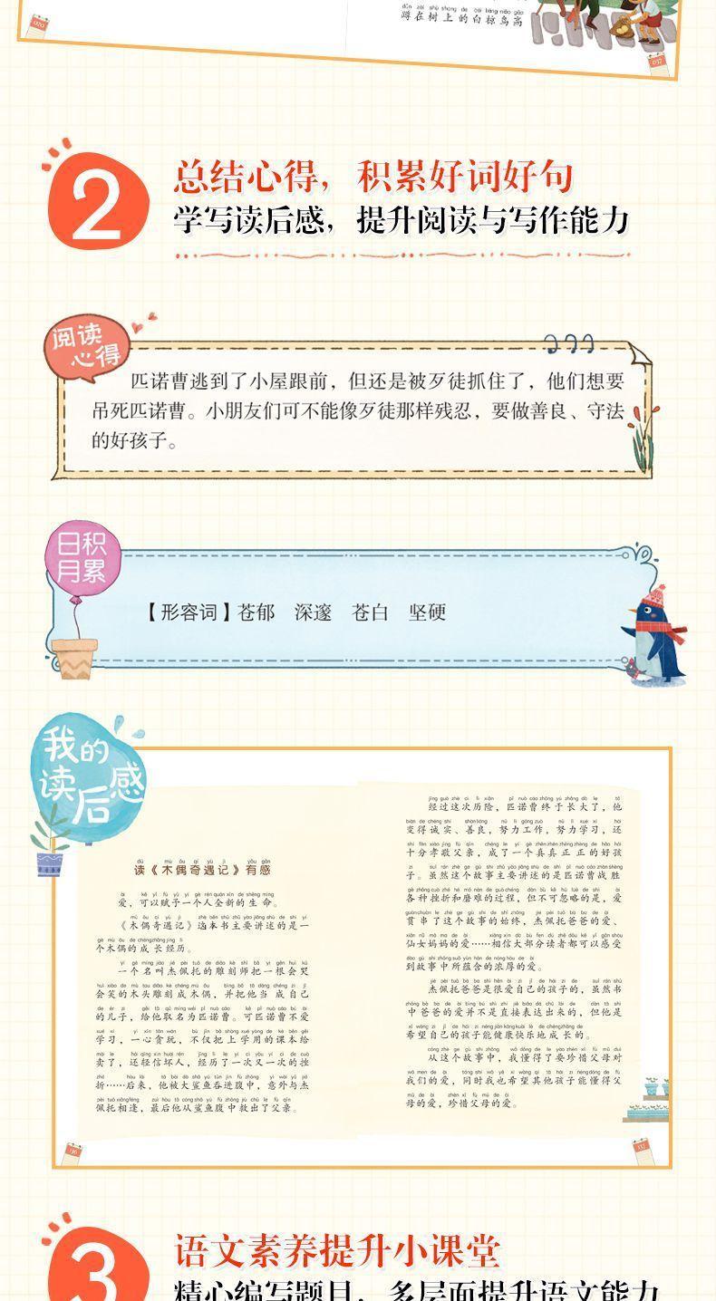 Pinóquio Color Chart versão fonética de crianças do ensino fundamental alunos primeira série segunda série terceira série livros de leitura extracurricular