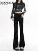 Jeans Preto Fino Micro-Boca de Sino de Verão 2024 para Mulheres Gordas Cintura Alta Emagrecedor Mais Fácil para Combinar Calças Boca de Sino