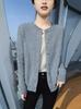 Cardigan de Malha de Manga Longa Vintage Twist para Mulheres com Gola Redonda 2024 Design Externo de Outono Top de Cor Sólida