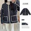 Spot novo sólido cor alta tecnologia indústria pesada contas bordado remendo pano alta densidade luz fino capuz perfil casaco feminino
