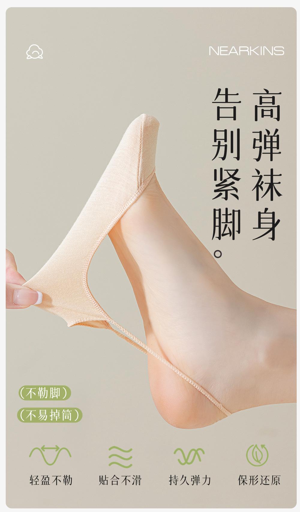 Meias de barco tipo sling, meias femininas de salto alto, meias de algodão antiderrapantes, sem salto, meias finas de meia palma, boca rasa, invisíveis, verão