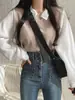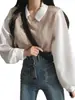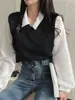 Atacado 2023 outono fio plus size menina gordinha falso duas peças t-shirt das mulheres costura gola polo camisola de manga comprida moda solta