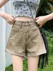 Shorts de cintura alta de verão cor café 2024 feminino design casual solto senso fixo frisado em forma de A calças femininas da moda