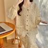 Pijamas Primavera e Outono Feminino Nova Nuvem Algodão Colarinho Quadrado Calças de Manga Longa Bonito Doce Princesa Estilo Roupa Exterior Roupas para Casa