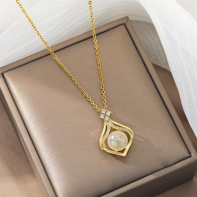 Sereia Ji Gota de Água Colar de Aço Titânio Pérola Europeia e Americana Clavícula Cadeia de Clavícula de Alta Qualidade Barroco Pingente Acessórios