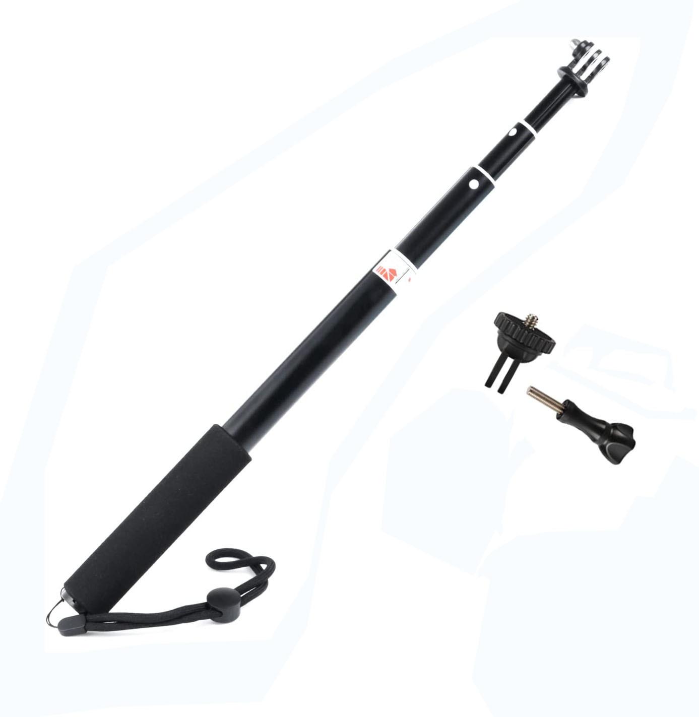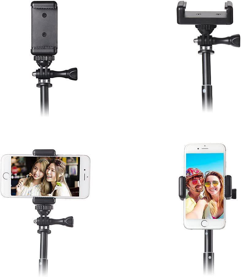 Características: Este produto tem uma ampla gama de usos e é comumente usado em câmeras esportivas no mercado. Pode ser usado para câmeras com parafusos de 1/4, microfones, etc. Também pode ser usado para telefones celulares quando equipado com um clipe de telefone celular. Um tripé pode ser conectado ao topo, e o comprimento pode ser travado e fixado entre 37-150 cm, e as visualizações longas e curtas podem ser ajustadas à vontade.