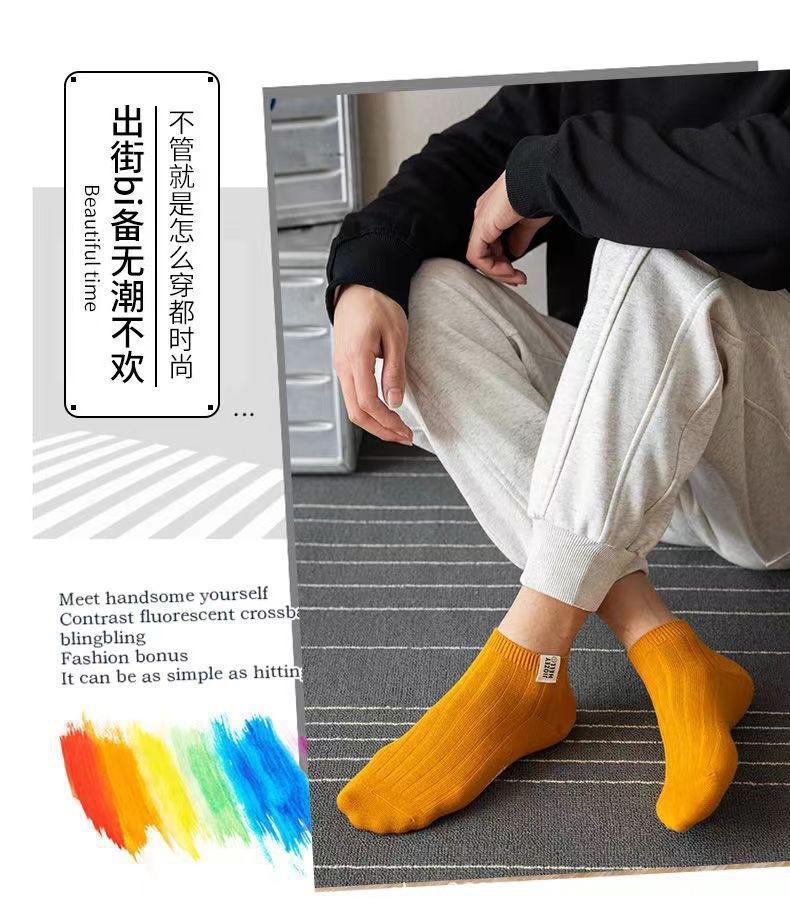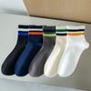 Meias Masculinas de Cano Curto Estilo Japonês com Etiqueta de Tecido de Agulha Dupla Meias Finas Invisíveis de Primavera e Verão Meias Masculinas Listradas de Cor Sólida Meias Esportivas Masculinas