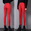 Jeans Vermelho Feminino 2024 Verão Cintura Alta Fina Slim-fit Emagrecimento Perna Calças Casuais Calças Lápis Retas
