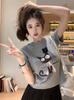Desenho animado gatinho padrão bordado de manga curta t-shirt das mulheres verão novo design sentido nicho estilo ocidental curto top ins na moda
