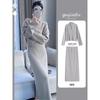 2024 Outono e Inverno Novo Coreano Com Decote Em V Puff Manga Suéter Top Cintura Alta Saia Plissada Elegante Terno De Duas Peças