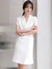 2023 Primavera e Verão Novo Desgaste de Negócios Feminino Rosa Conjunto de Terno de Manga Média Temperamento de Cintura Vestido de Vendas de Colarinho Branco