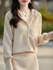 2024 Outono e Inverno Novo Casaco de Lã Dupla Face Petite Com Capuz Solto Estilo Universitário Casaco De Lã Para Todos Os Fósforos