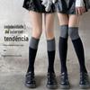 Meias acima do joelho meias femininas de algodão para outono e inverno cor sólida vertical tubo longo empilhado meias emagrecimento jk costura desossada meias coxa