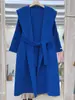 Casaco de Caxemira Outono e Inverno 2024 para Mulheres, Longo Estilo Coreano com Gola Grande, Amarração, Casaco de Lã Solto Dupla Face com Lapela Grande