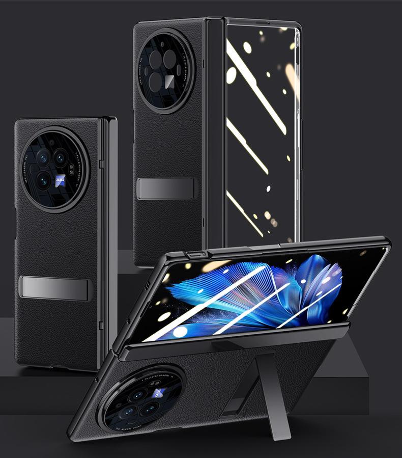 Adequado para Capa de Celular Vivoxfold3 Xfold3Pro Couro Liso Dobrável Suporte Capa Filme Integrada Capa Business