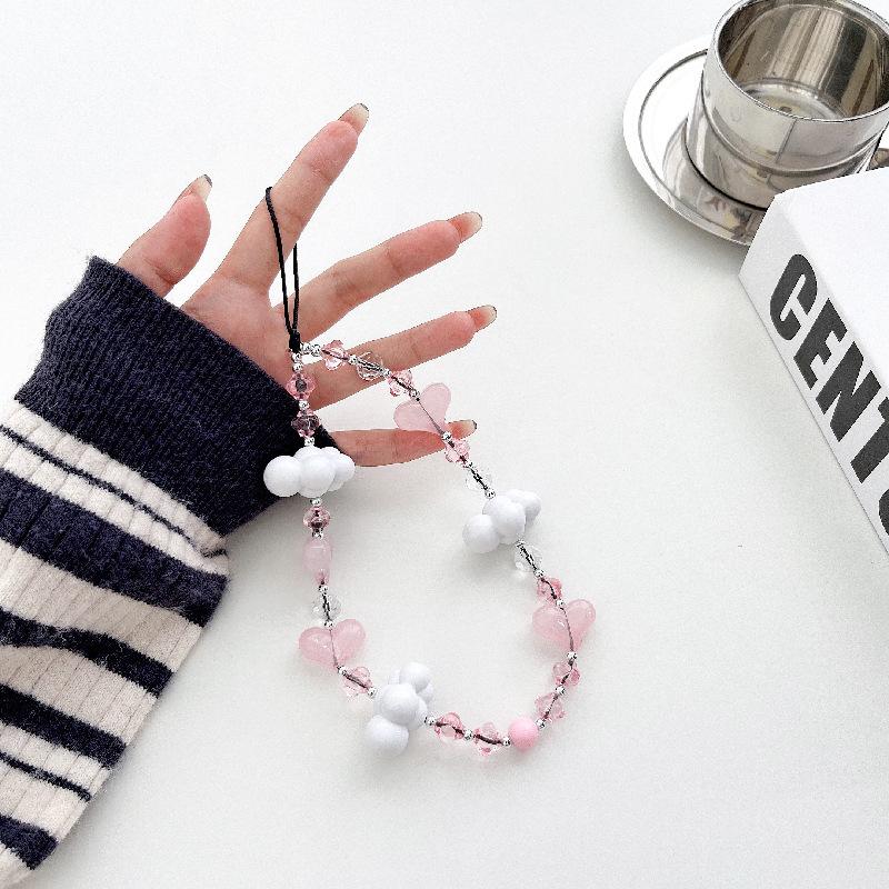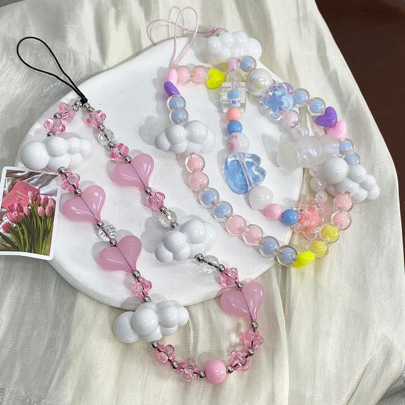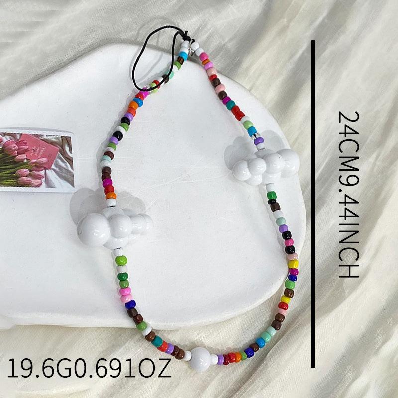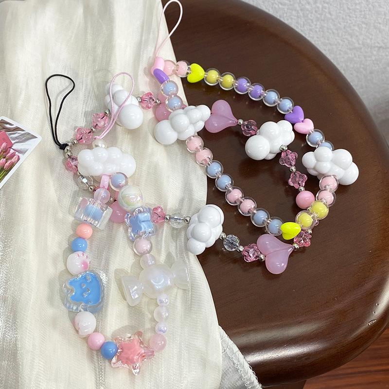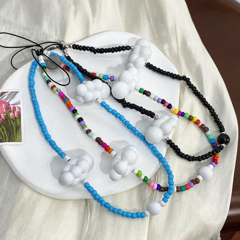 Ins Mesmo Estilo CASE HOUSE Estéreo Cristal Branco Nuvem Celular Corrente Cordão ins Estilo Mão Corda Pingente de Contas para Mulheres