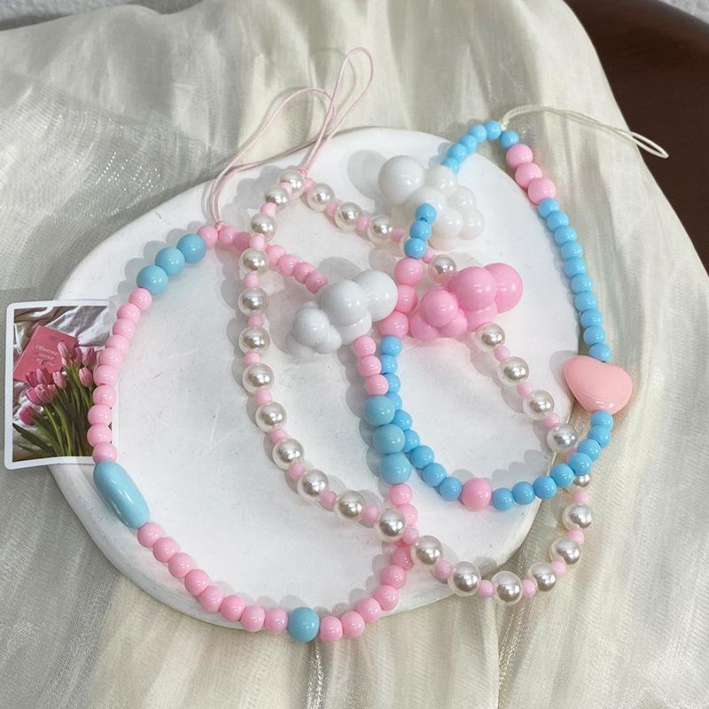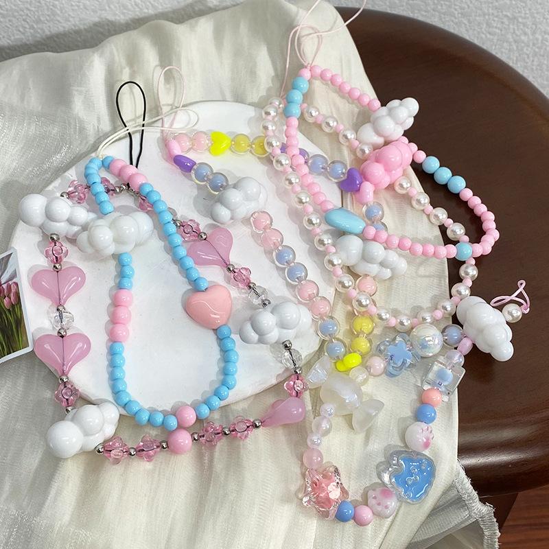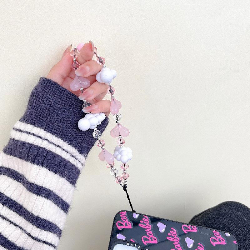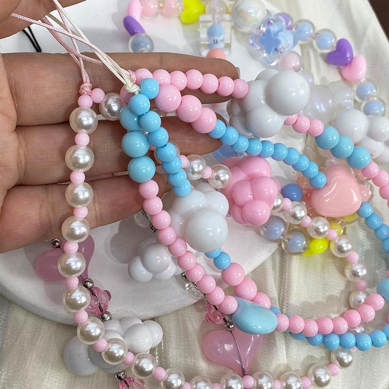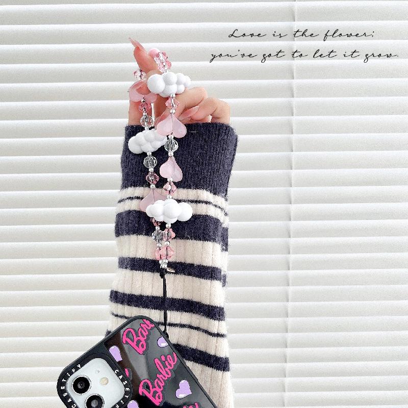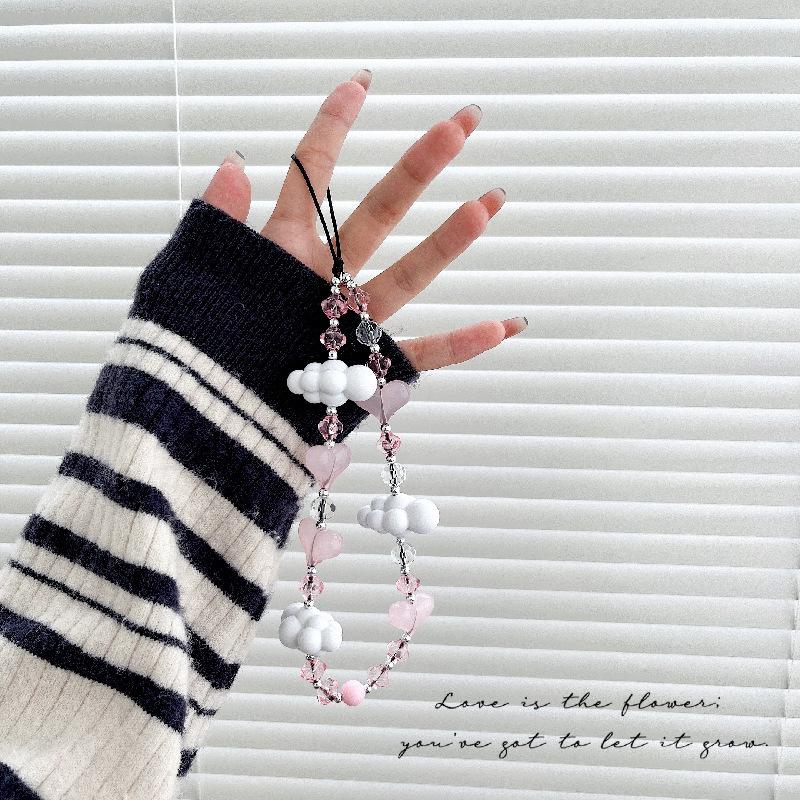 Ins Mesmo Estilo CASE HOUSE Estéreo Cristal Branco Nuvem Celular Corrente Cordão ins Estilo Mão Corda Pingente de Contas para Mulheres
