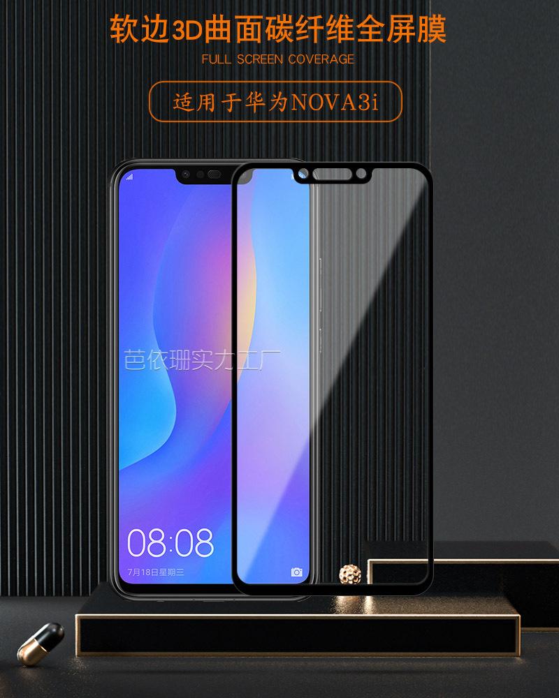 Adequado para Huawei Honor Nova3i Soft EDge Tela Cheia TempereD Filme Nova3 Fibra de Carbono CurveD 3D TempereD Filme de Vidro