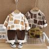 Terno esportivo forrado de lã infantil 2024 inverno novo suéter conjunto de duas peças 1-5 anos infantil estilo estrangeiro roupas de inverno