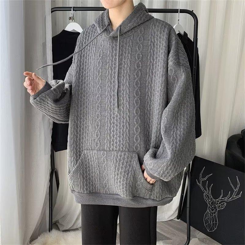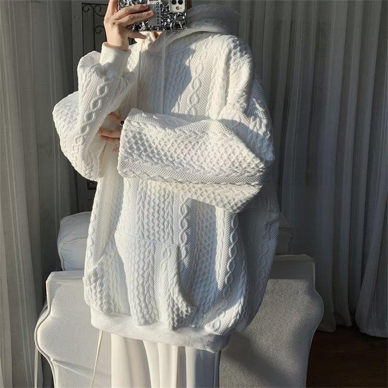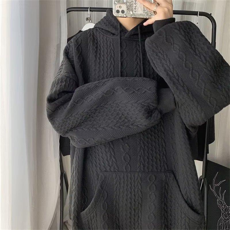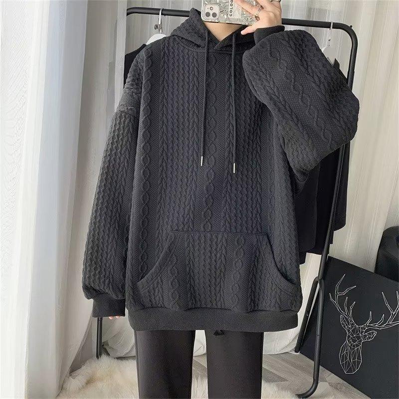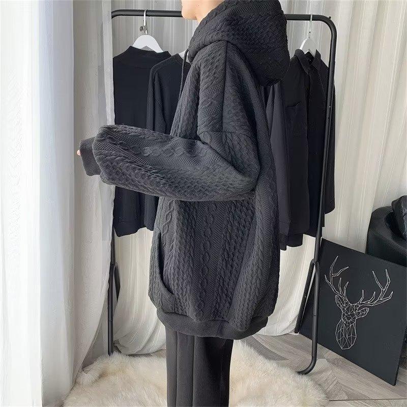 Moletom com textura tridimensional torcida masculino em Hong Kong tendência da marca primavera e outono solto gola redonda design top casal jaqueta