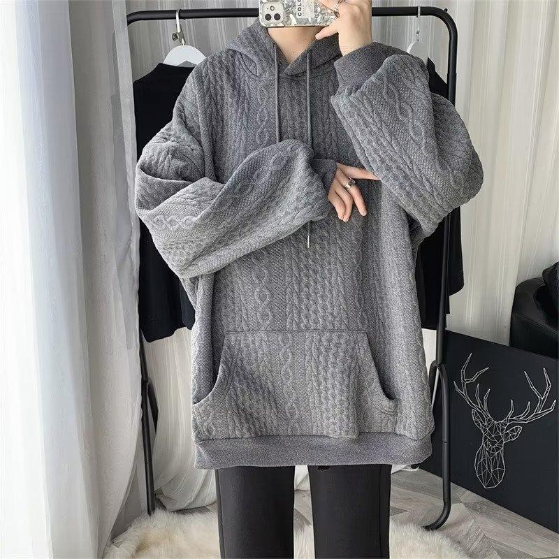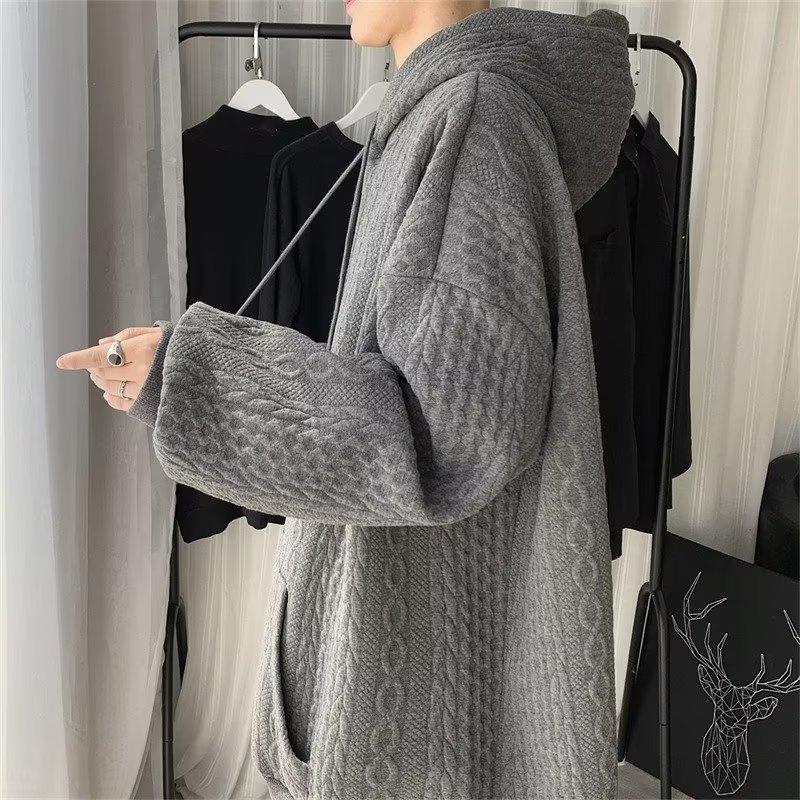 2023 Outono e Inverno Novos Homens Com Capuz Cardigan Suéter Cor Sólida Estilo Hong Kong Jaqueta Estudante Roupas Masculinas Tops