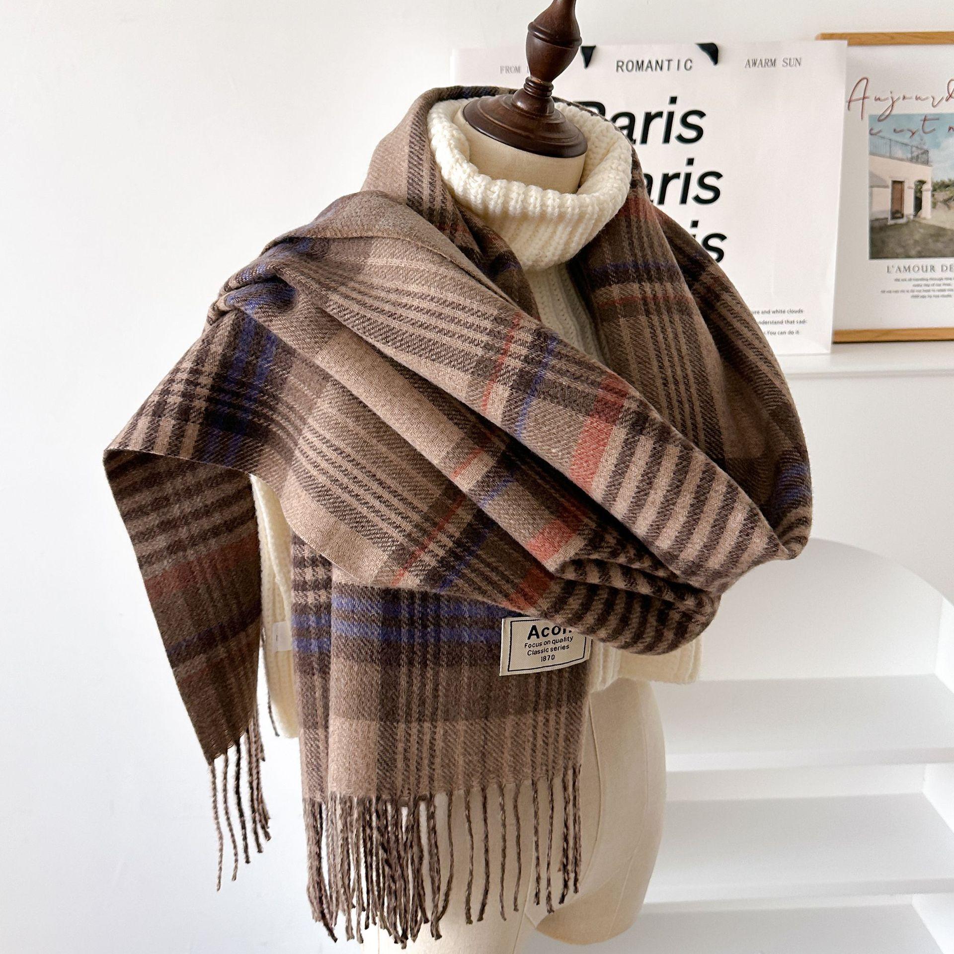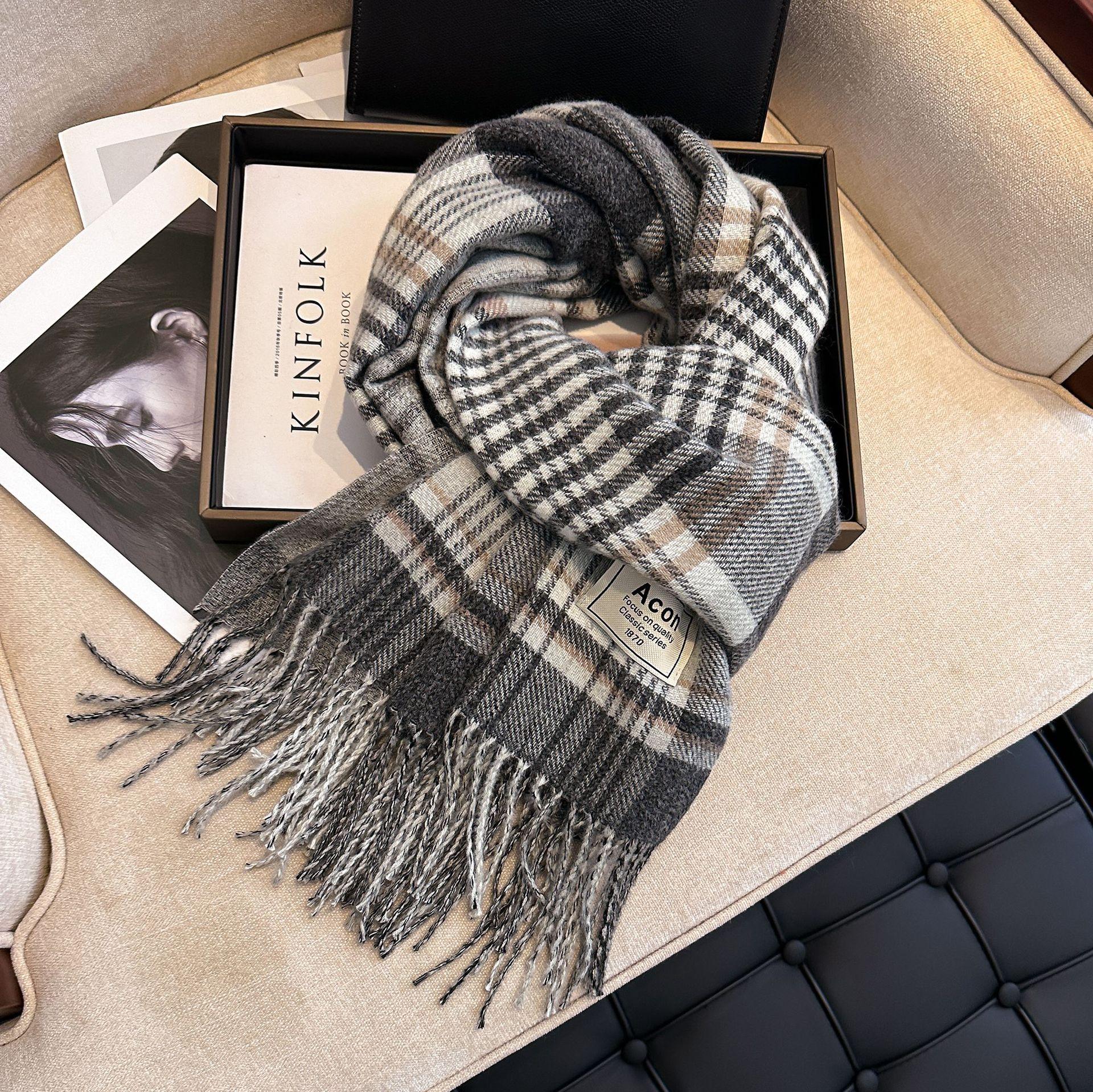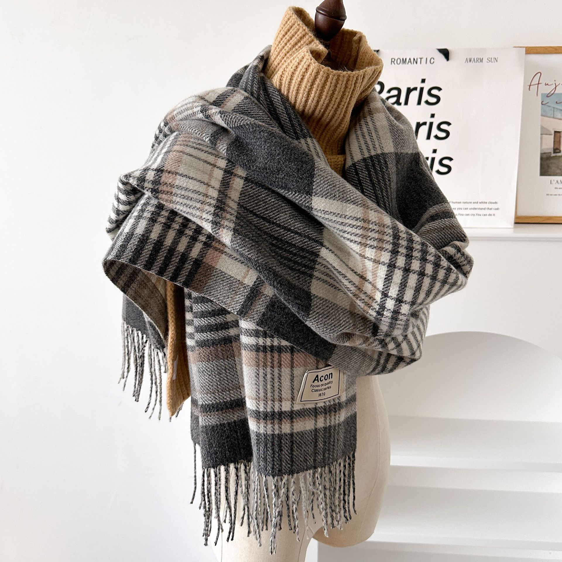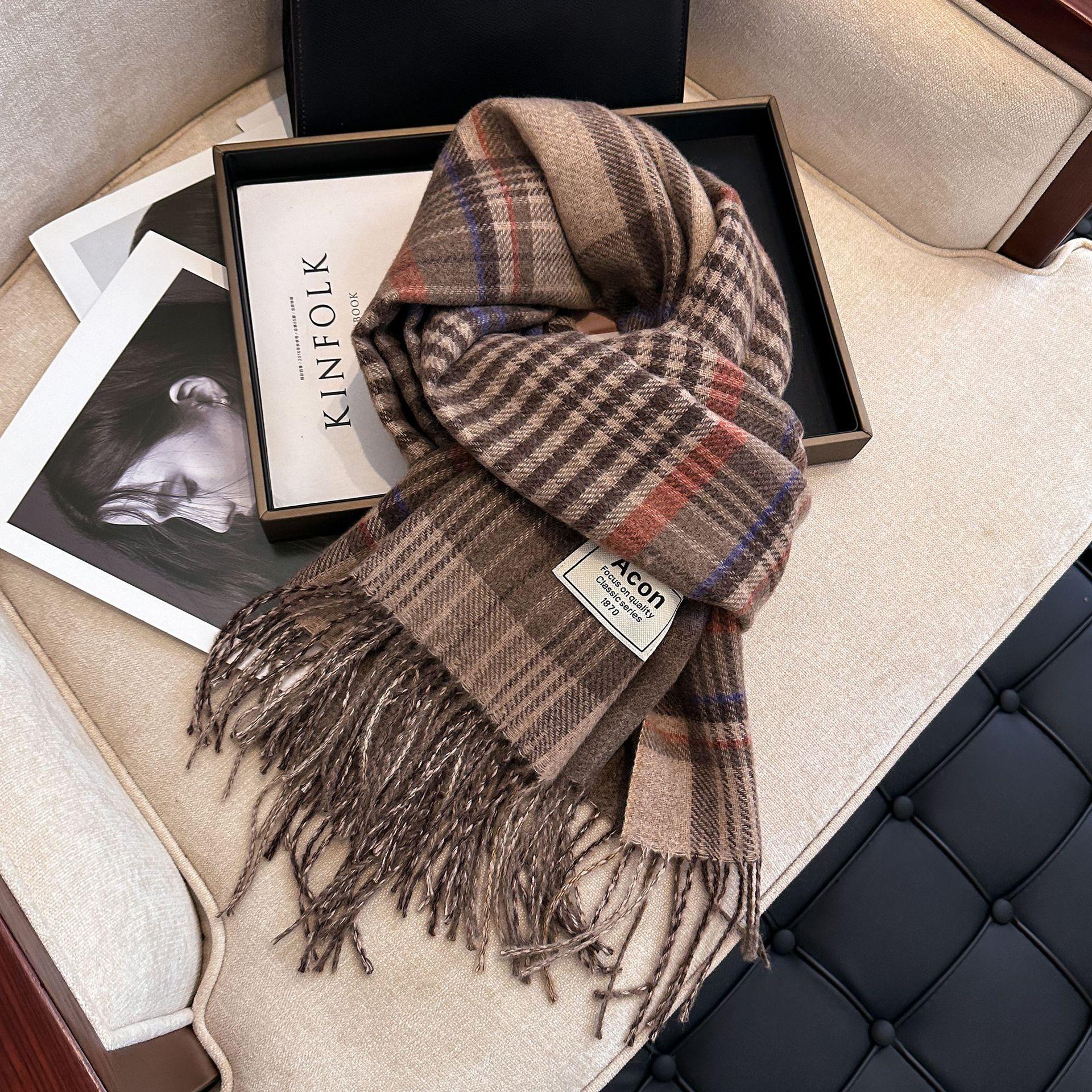 Cachecol xadrez de alta qualidade de estilo coreano de inverno Moda engrossada borla cachecol de estilo coreano para homens e mulheres lenço de presente para estudantes