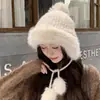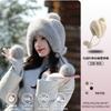 Conjunto de Touca e Cachecol de Pelúcia para Mulheres, à Prova de Frio, Proteção de Orelhas para Ciclismo, Chapéu Lei Feng de Três Peças com Protetores de Orelha com Elemento de Raposa