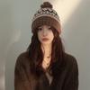 Chapéu de pele de coelho estilo coreano outono e inverno, chapéu infantil de lã de malha com renda de pérolas, chapéu de proteção para orelhas quente e fria de inverno