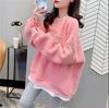 Lote 2024 Novas mangas de outono e inverno femininas, jaqueta longa de flanela bordada com morango, fofa, para escritório, manga antiincrustante