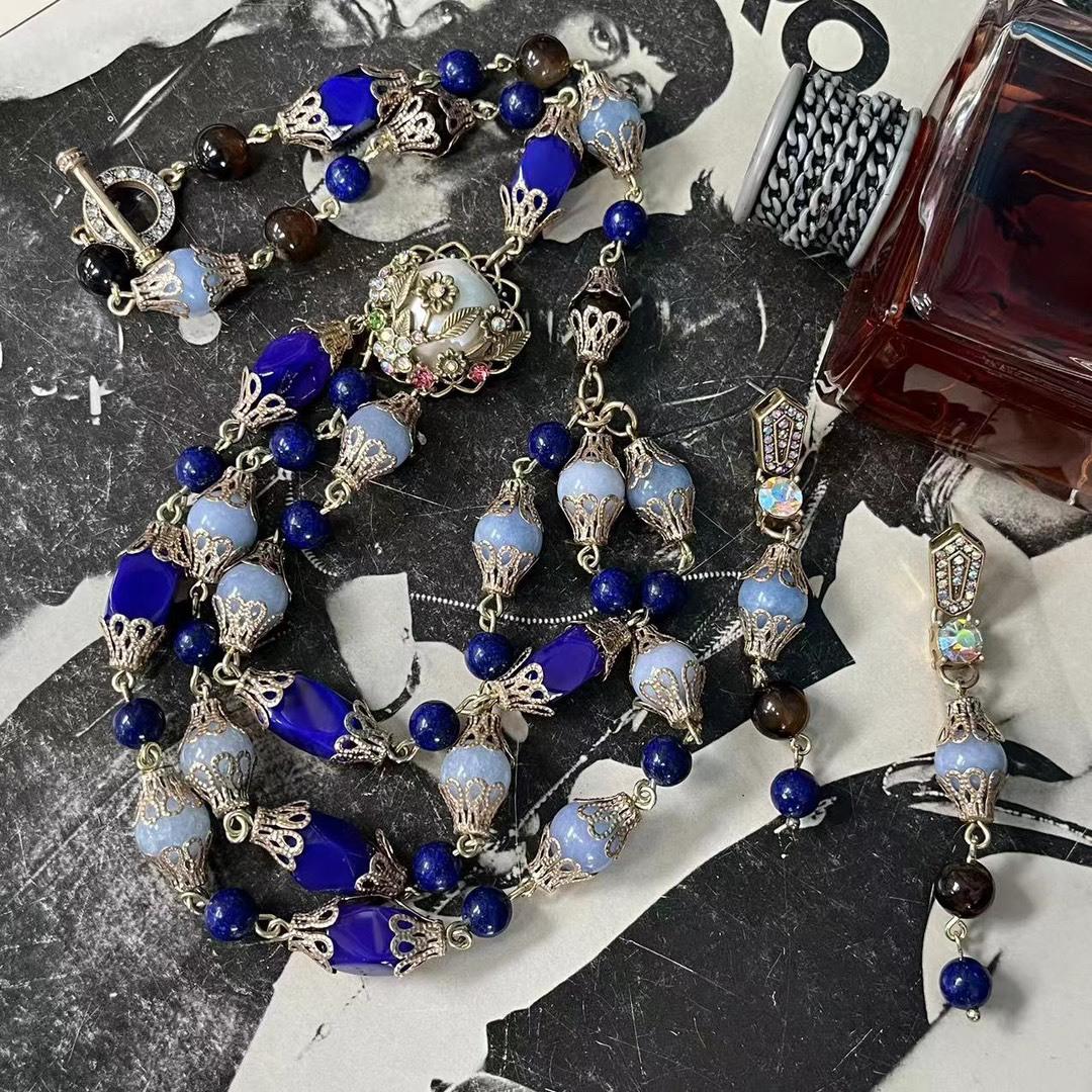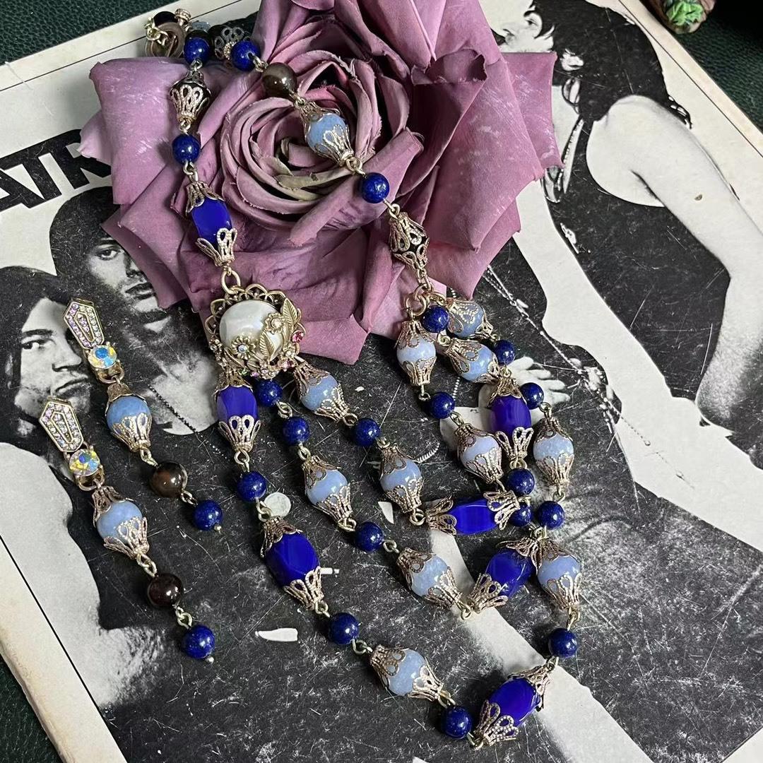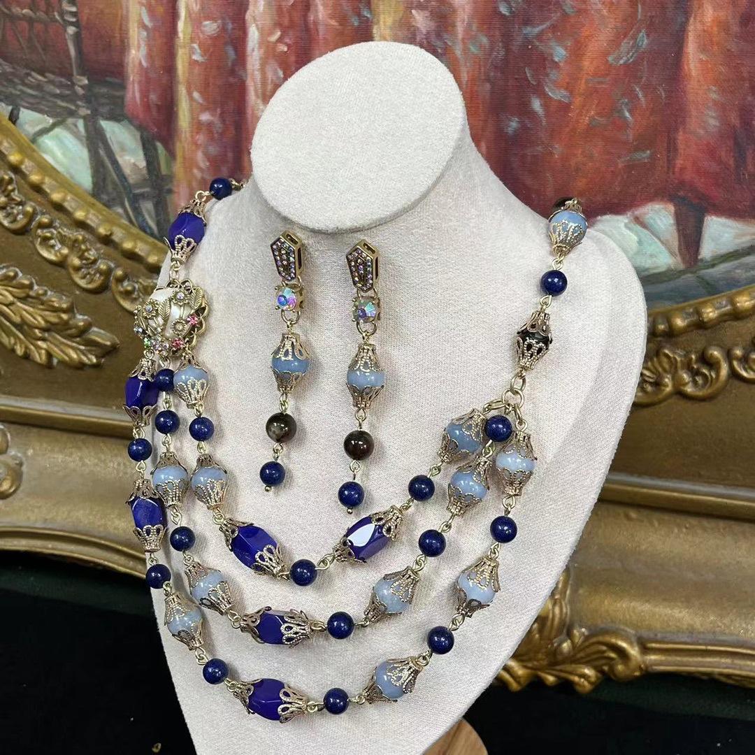 [Mel Sul] Vintage Middle Ancient European and American Court Fashion High-grade Blue Glaze Multi-layer Colar Brincos terno