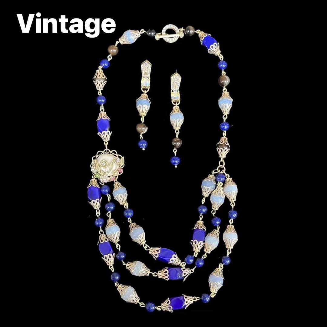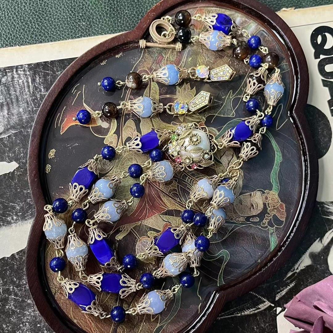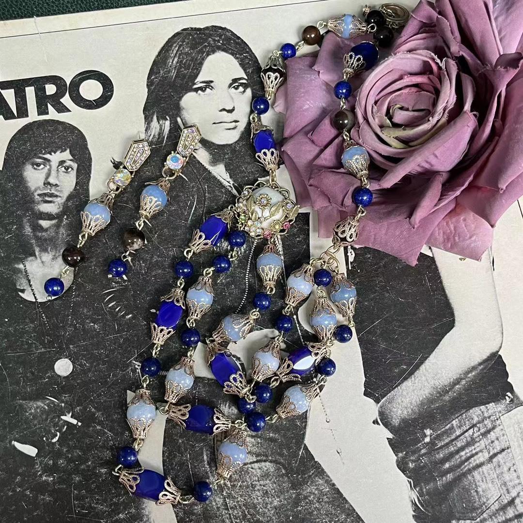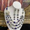 [Mel Sul] Vintage Middle Ancient European and American Court Fashion High-grade Blue Glaze Multi-layer Colar Brincos terno