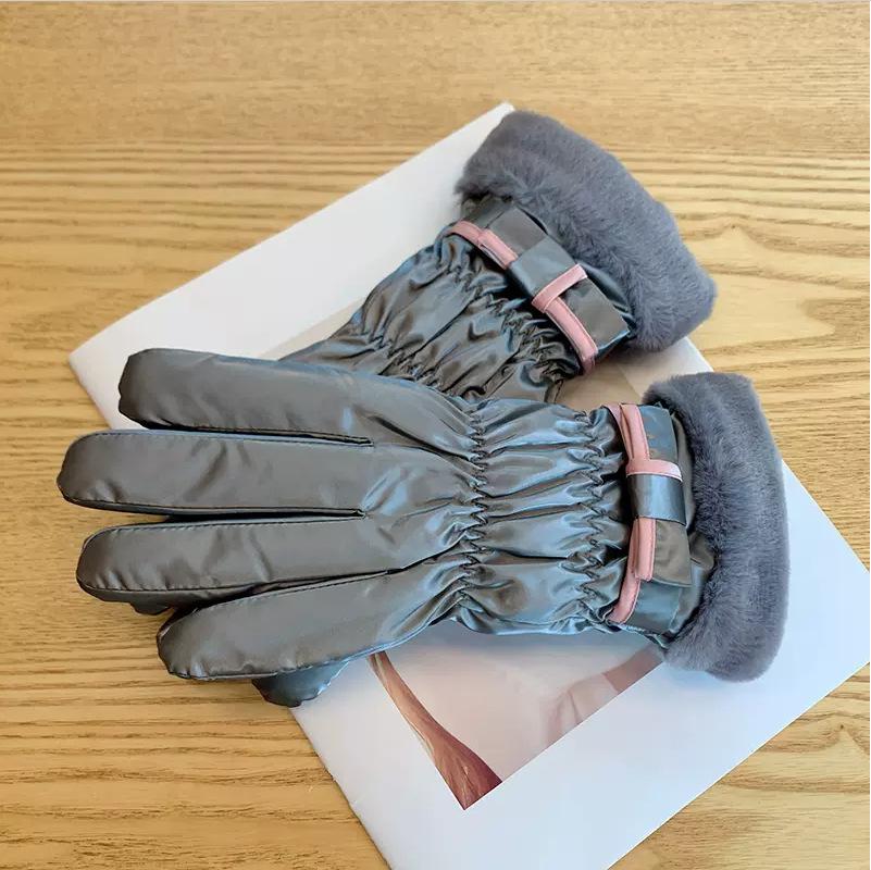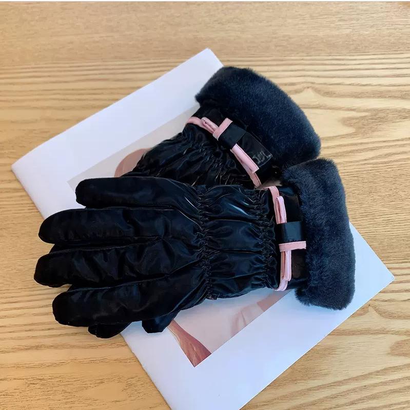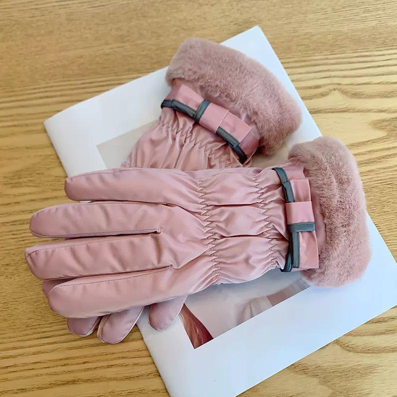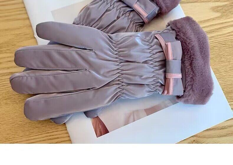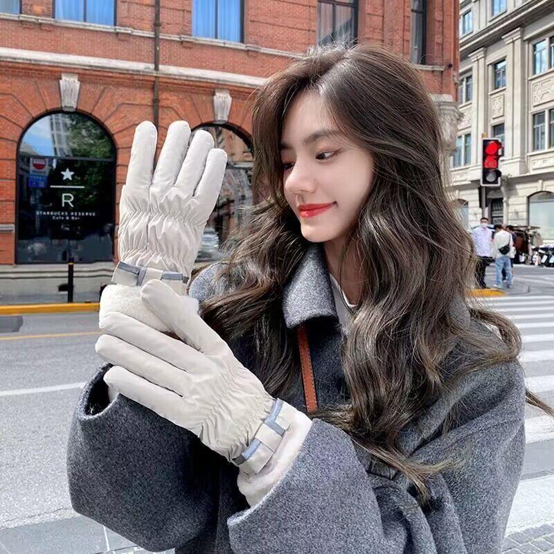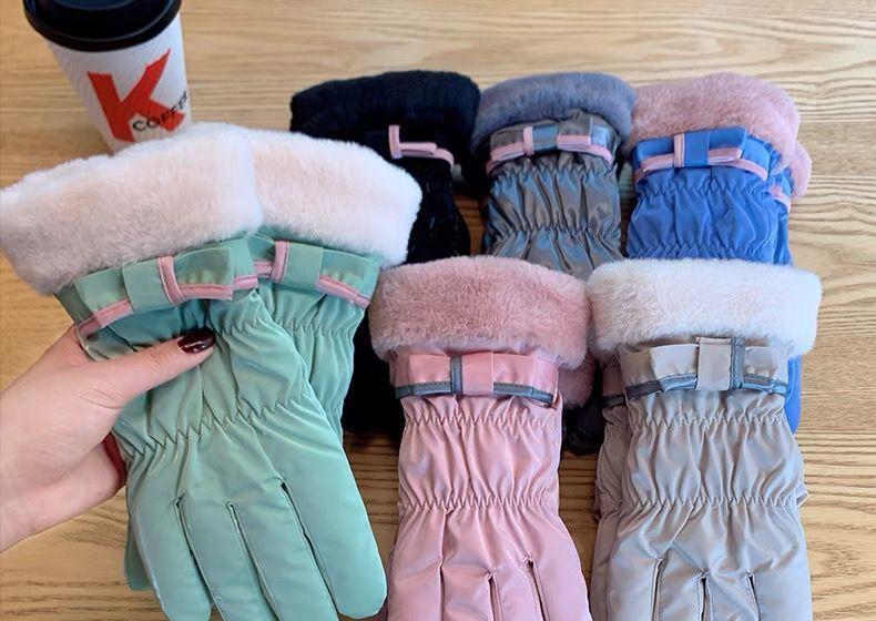 Luvas quentes femininas de inverno forradas de lã espessadas à prova de vento à prova de frio para estudantes fofas luvas de ciclismo de esqui ao ar livre