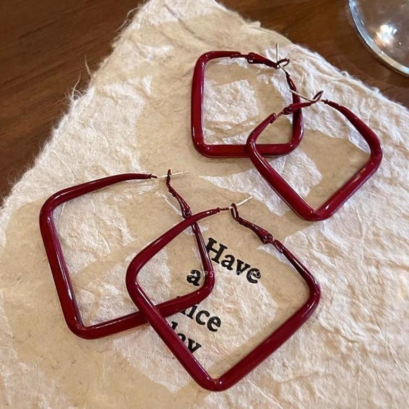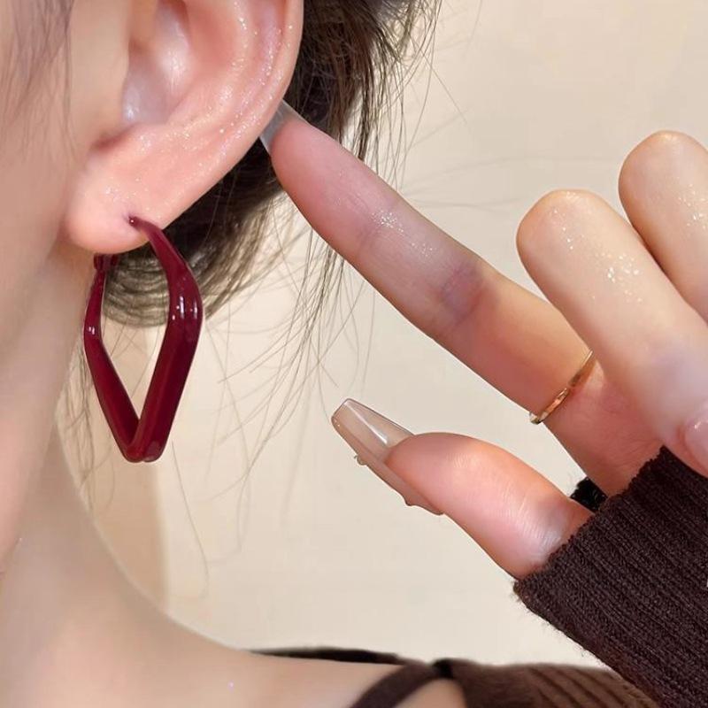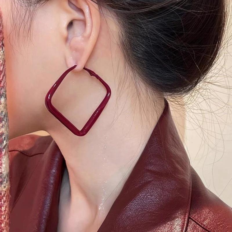 Brincos Vermelhos Ankora Quadrados Retrô Estilo Hong Kong 2024 Novos Brincos de Orelha de Sentido High-end Elegantes Brincos de Luxo Leves para Mulheres