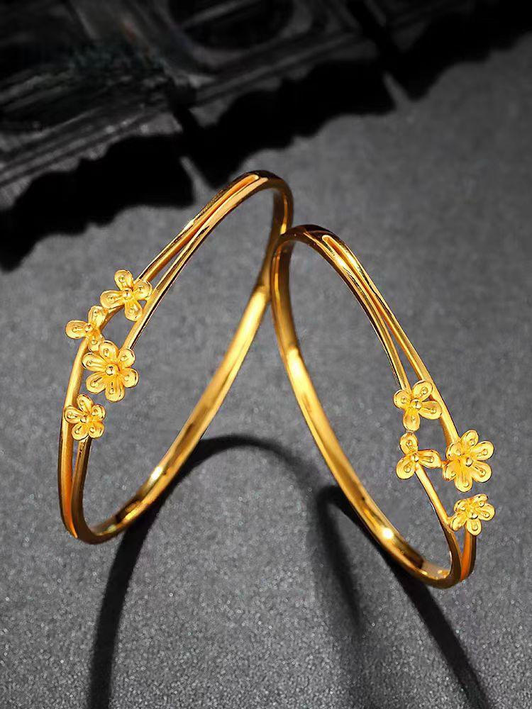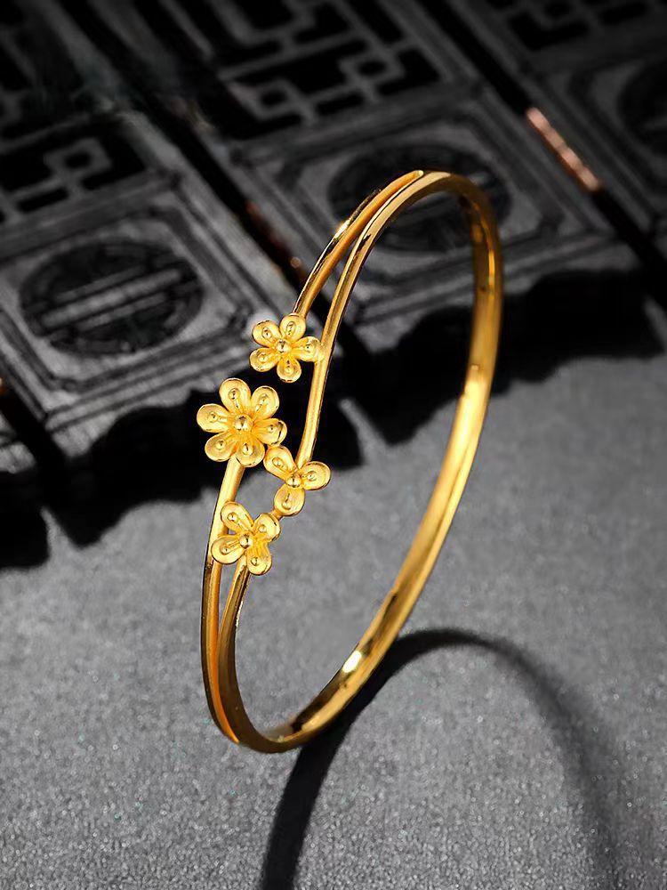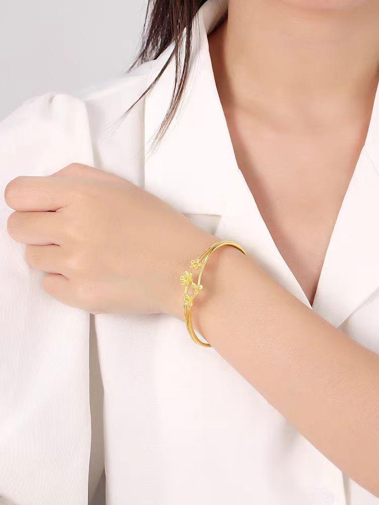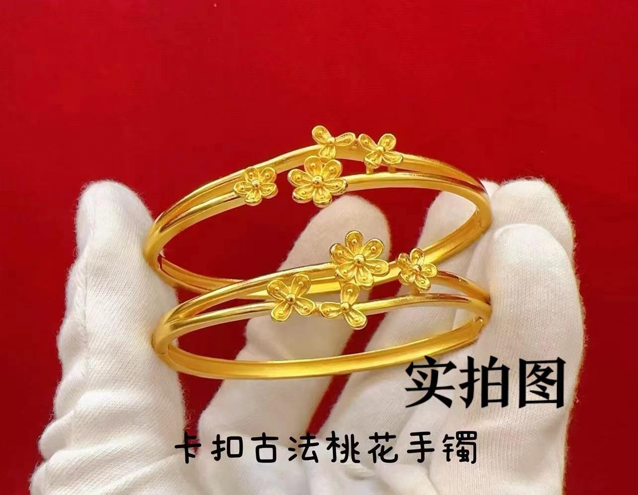 Pulseira Flor de Pêssego Banhada a Ouro para Mulheres, Fecho de Ouro Antigo, Pulseira Versátil de Ouro Rosa