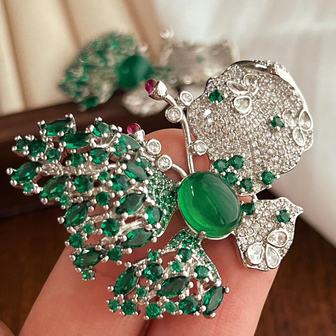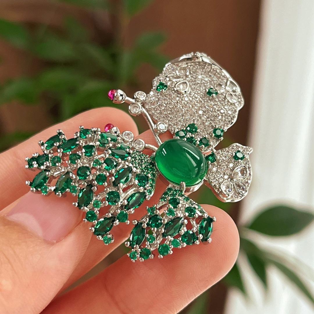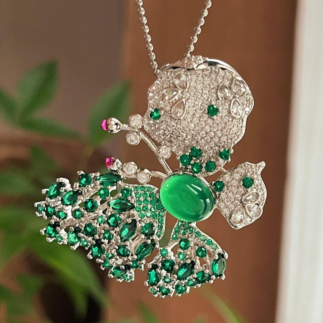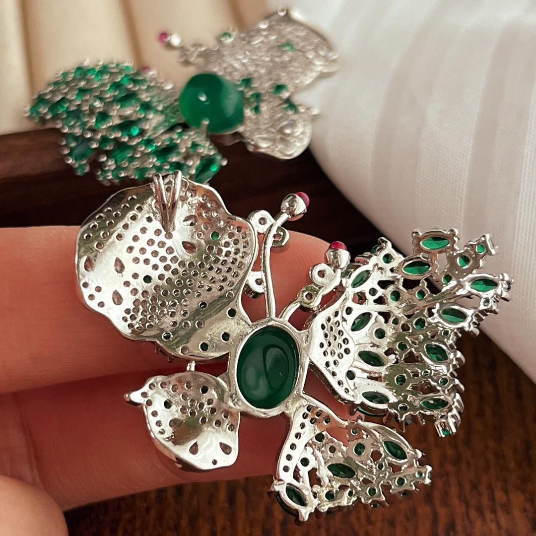 Pingente de borboleta de calcedônia verde natural retrô Guofeng