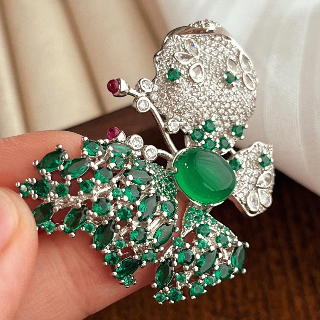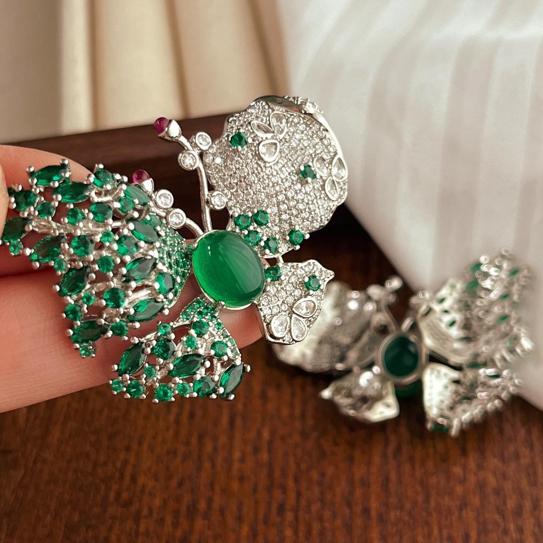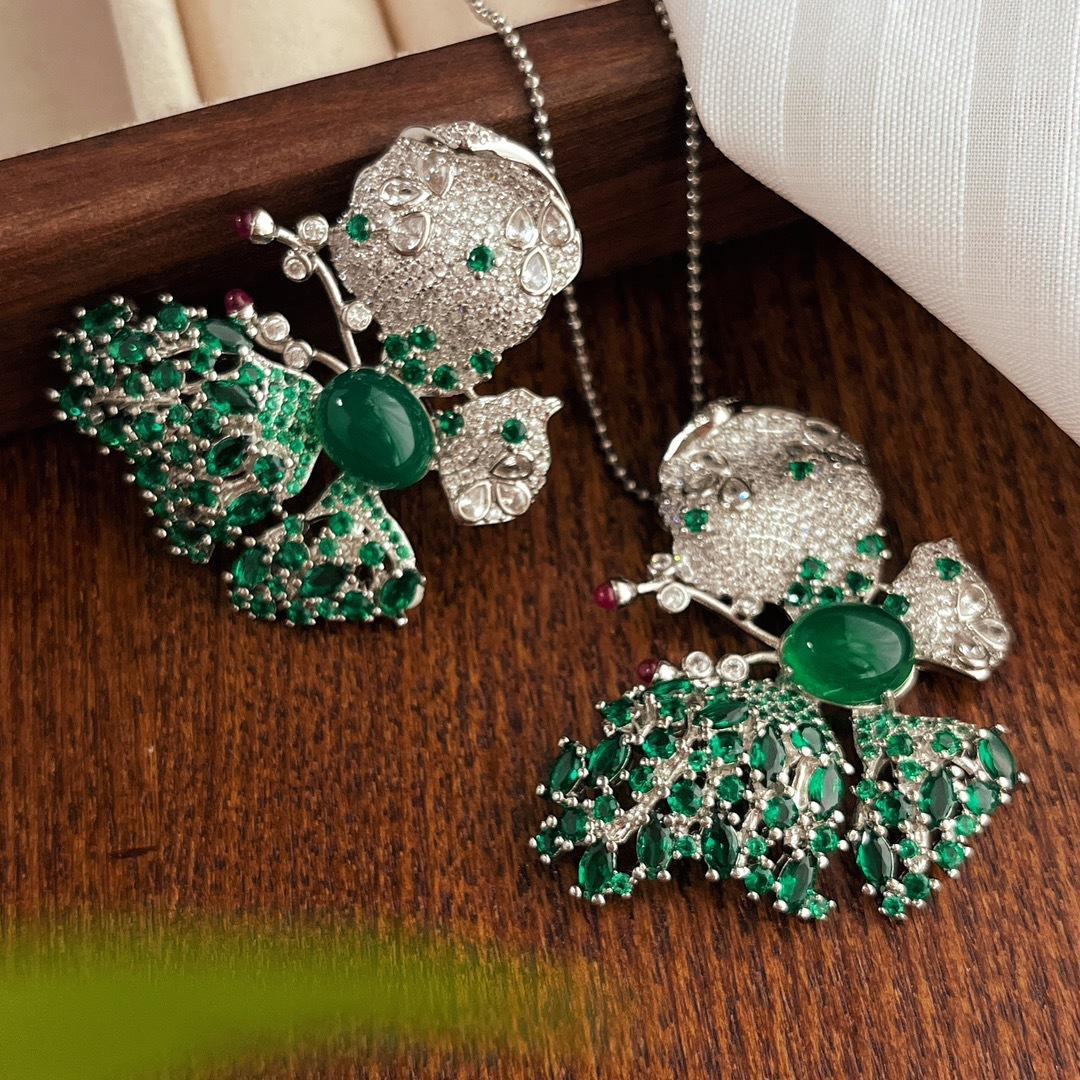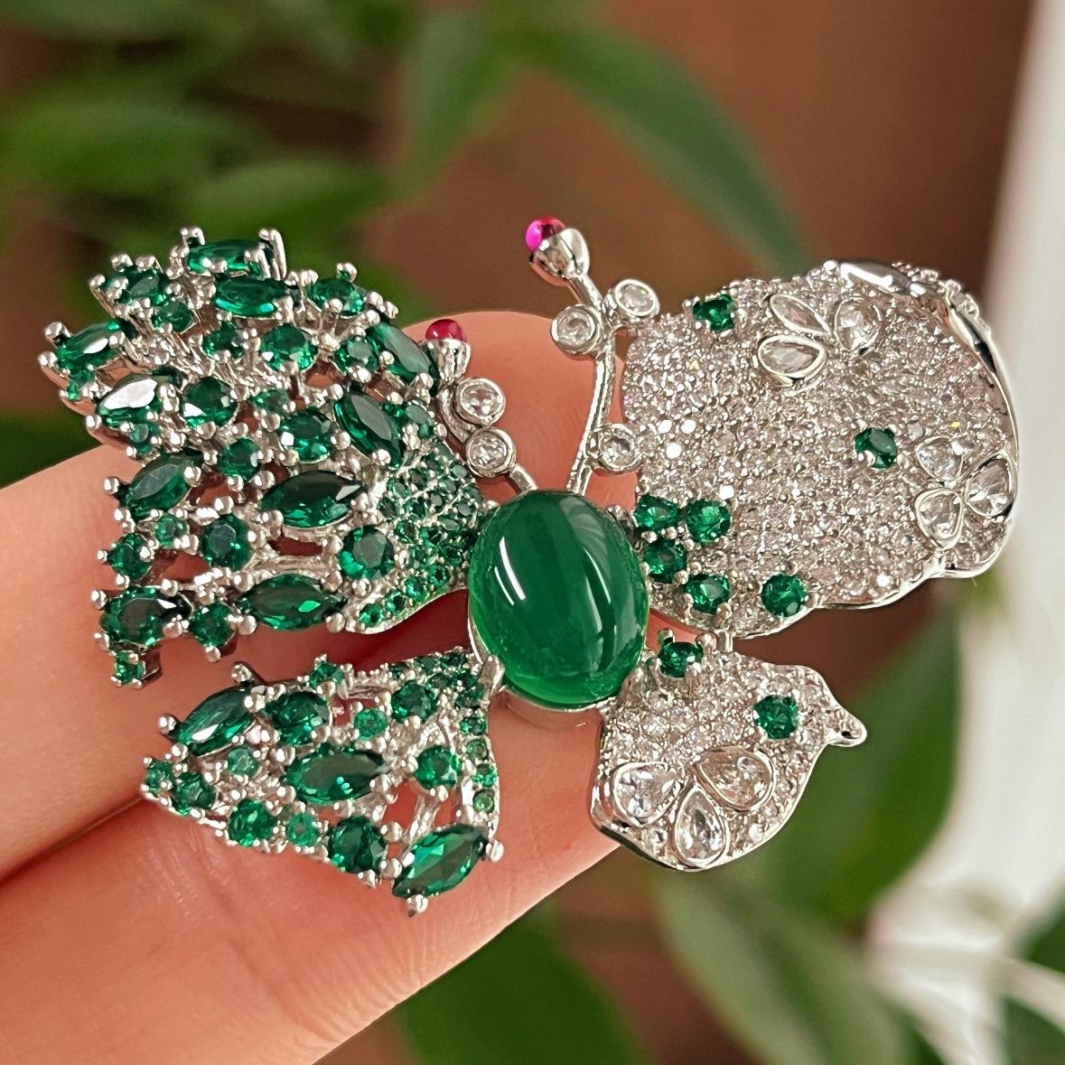 Pingente de borboleta de calcedônia verde natural retrô Guofeng