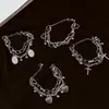 Pulseira Pingente Coração Pérola Dupla Camada Super Legal Atacado, Joia Unissex Minimalista Estilo Escuro Design de Nicho