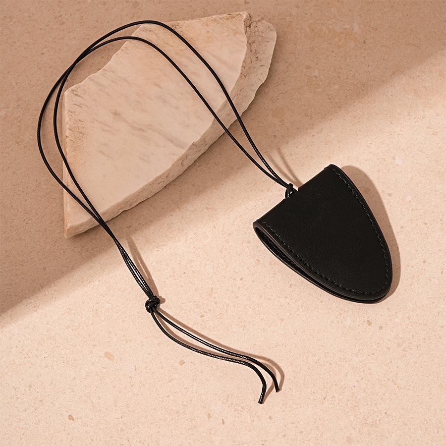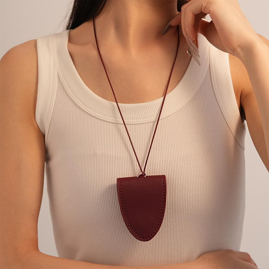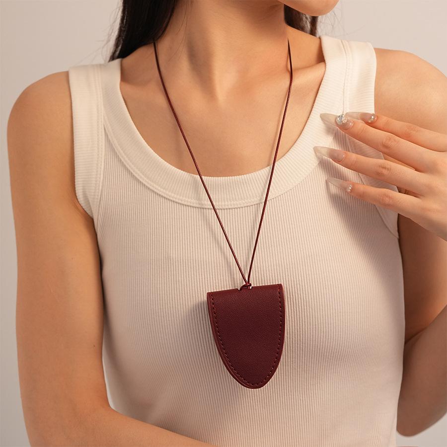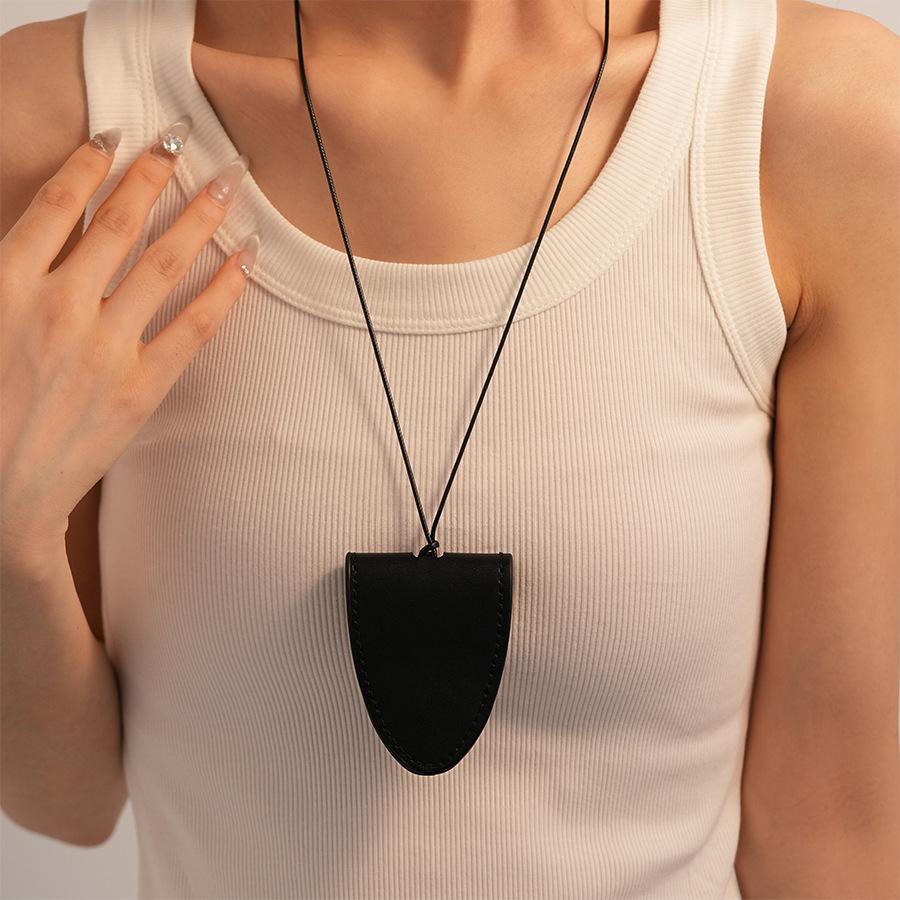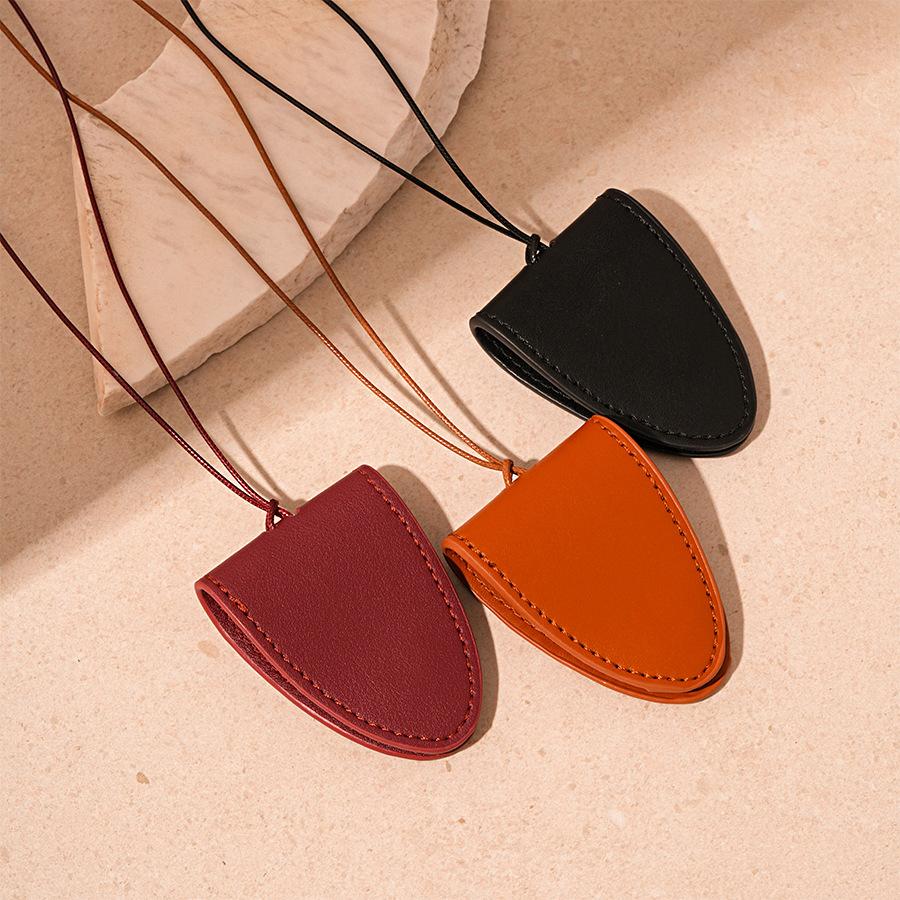 Simples Couro Artificial Triângulo Magnético Armazenamento Titular Camisola Corrente Retro Longo Temperamento Portátil Colar de Alta Qualidade para Mulheres