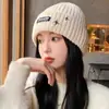 Chapéu Feminino Outono e Inverno Quente Letra P All-match Chapéu de Malha Coreano Moda Rosto Pequeno Chapéu de Lã Proteção Externa Frio