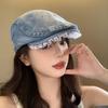 Chapéu Feminino 2024 Nova Boina Vintage Outono e Inverno Estilo Coreano All-match Face Mostrando Pequeno Chapéu Pintor Grande Circunferência Da Cabeça Chapéu Belle