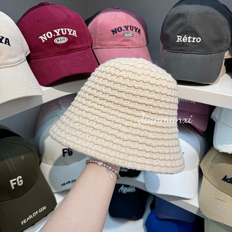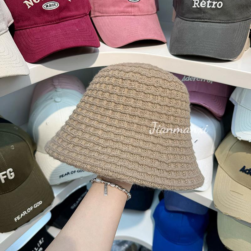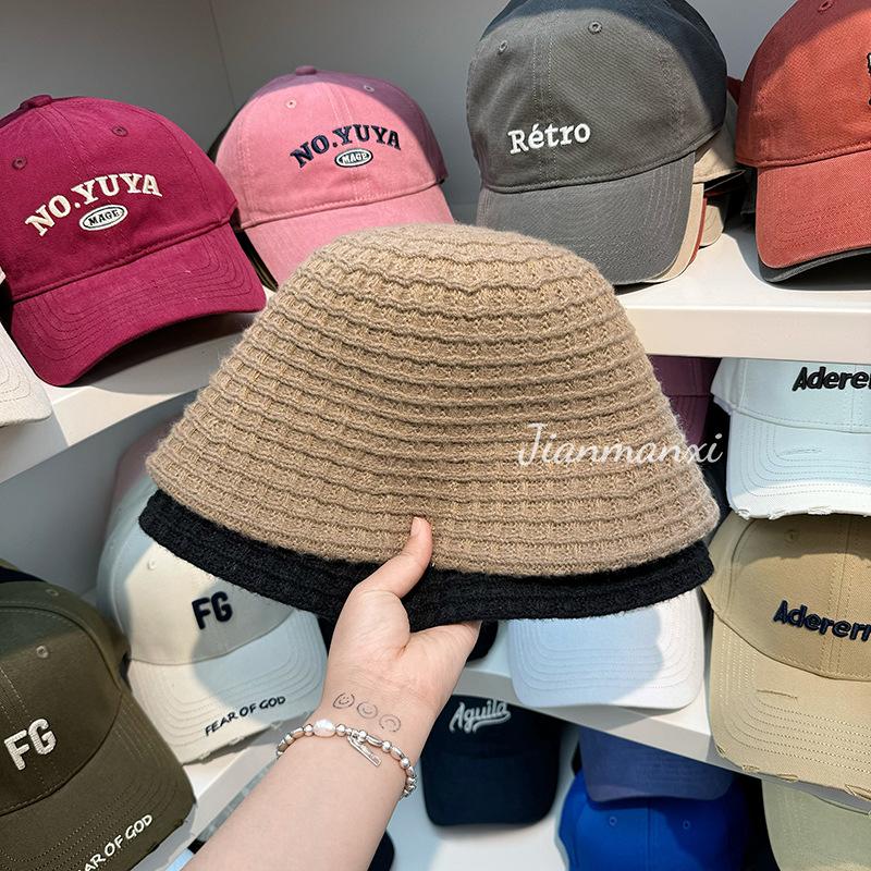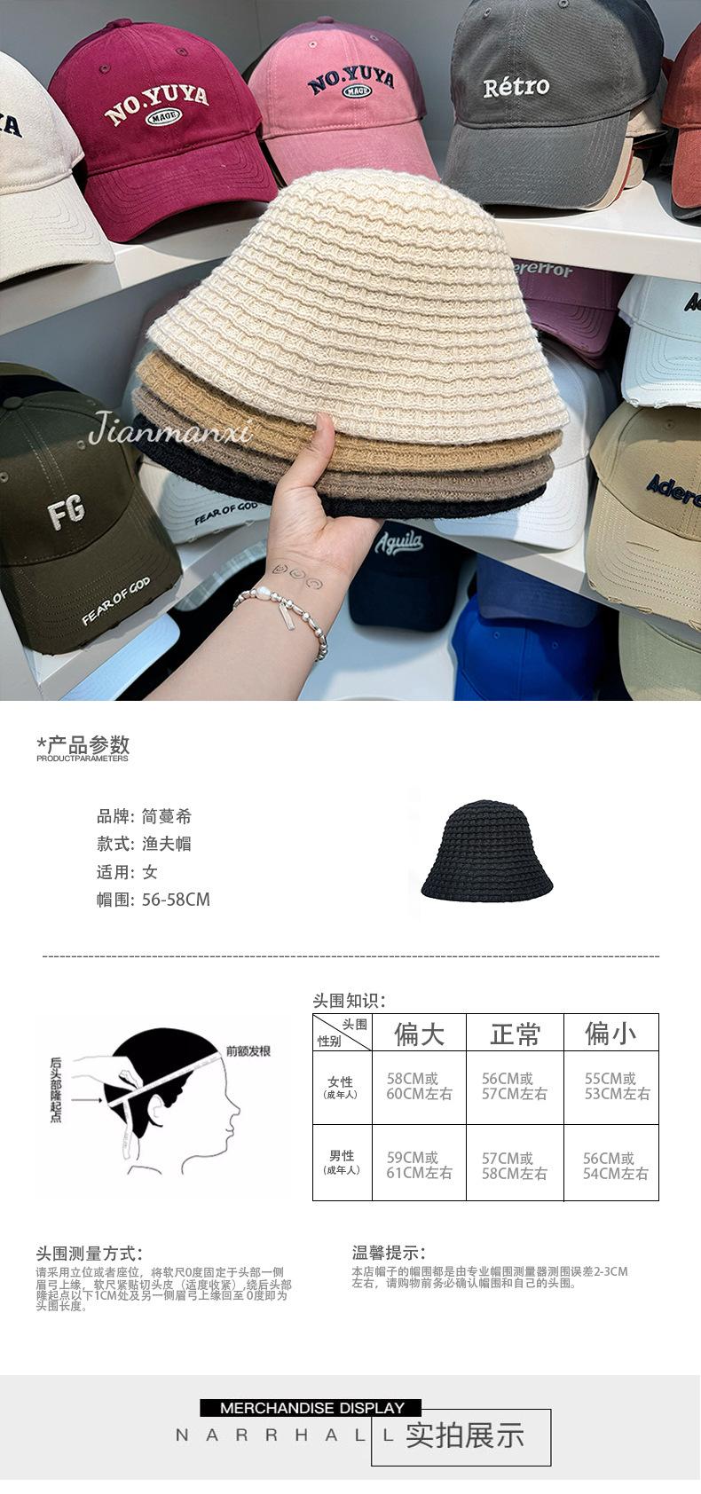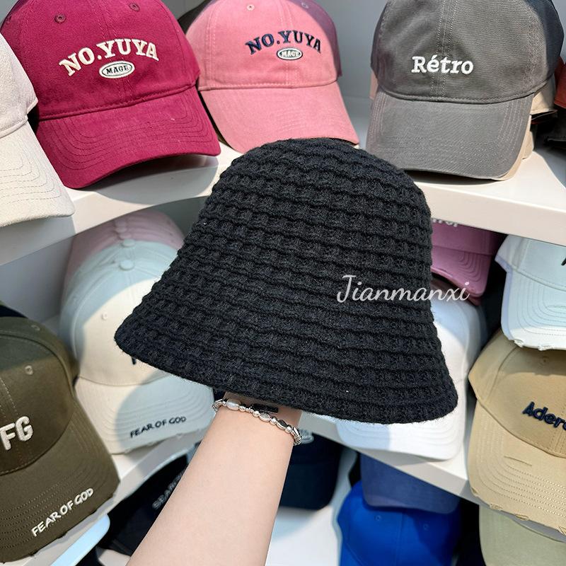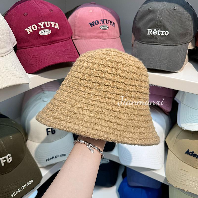 Chapéu de pescador de malha xadrez simples cor sólida bacia chapéu feminino outono e inverno rosto pequeno grande cabeça quente balde chapéu atacado