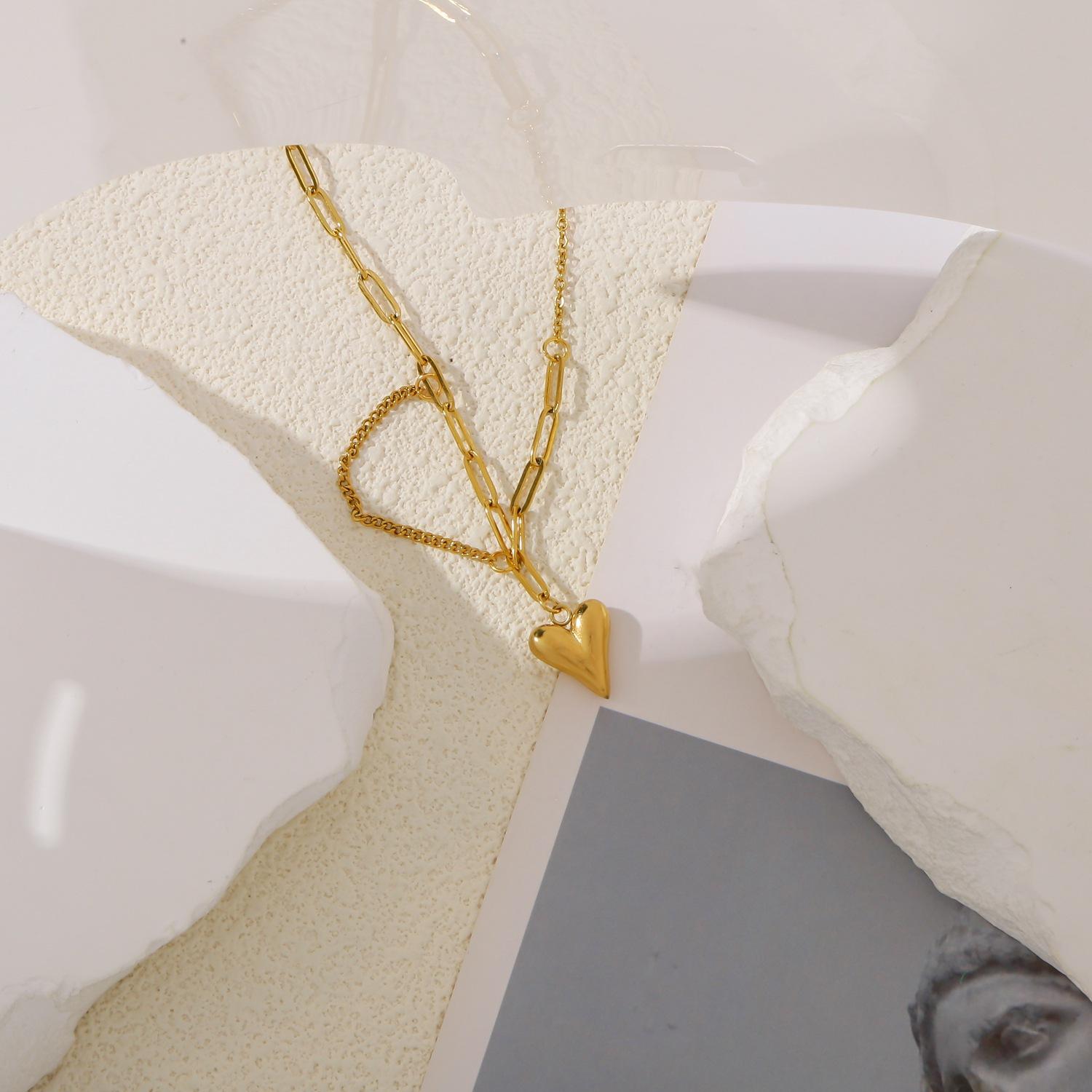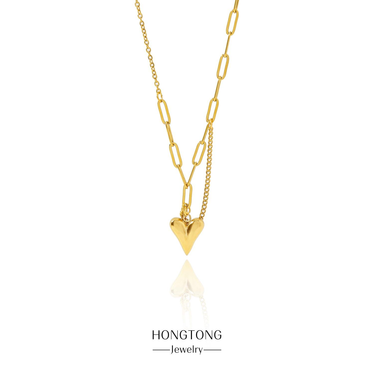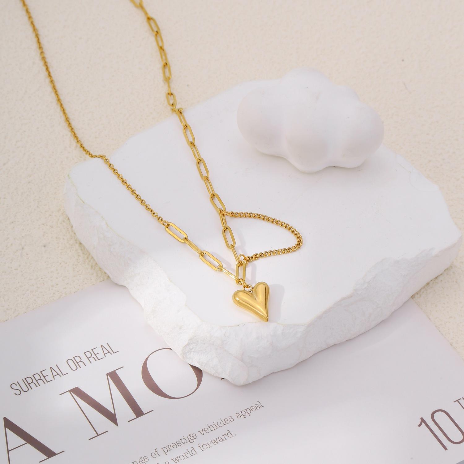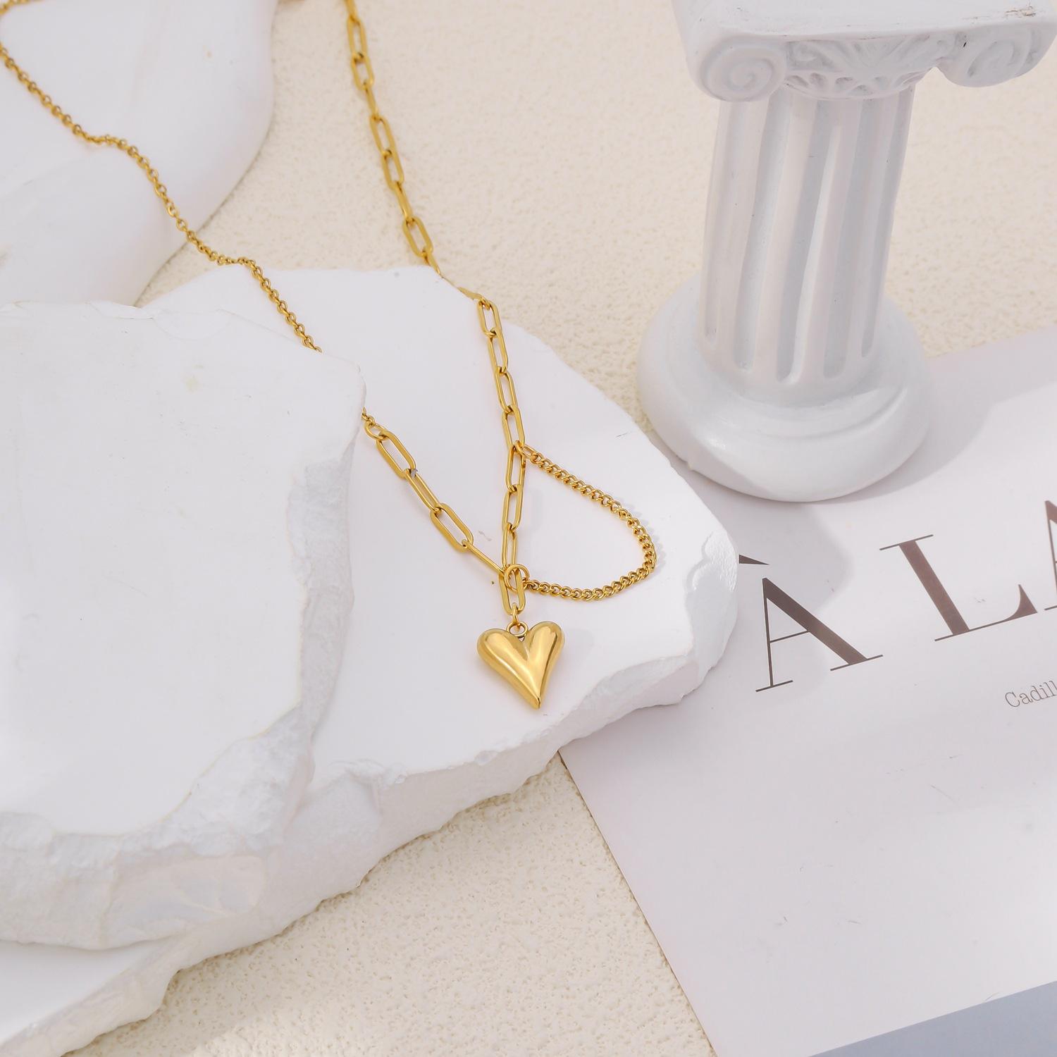 Tridimensional em forma de coração pingente de aço titânio O-cadeia de clavícula luz moda feminina de luxo all-match high-grade personalidade temperamento colar