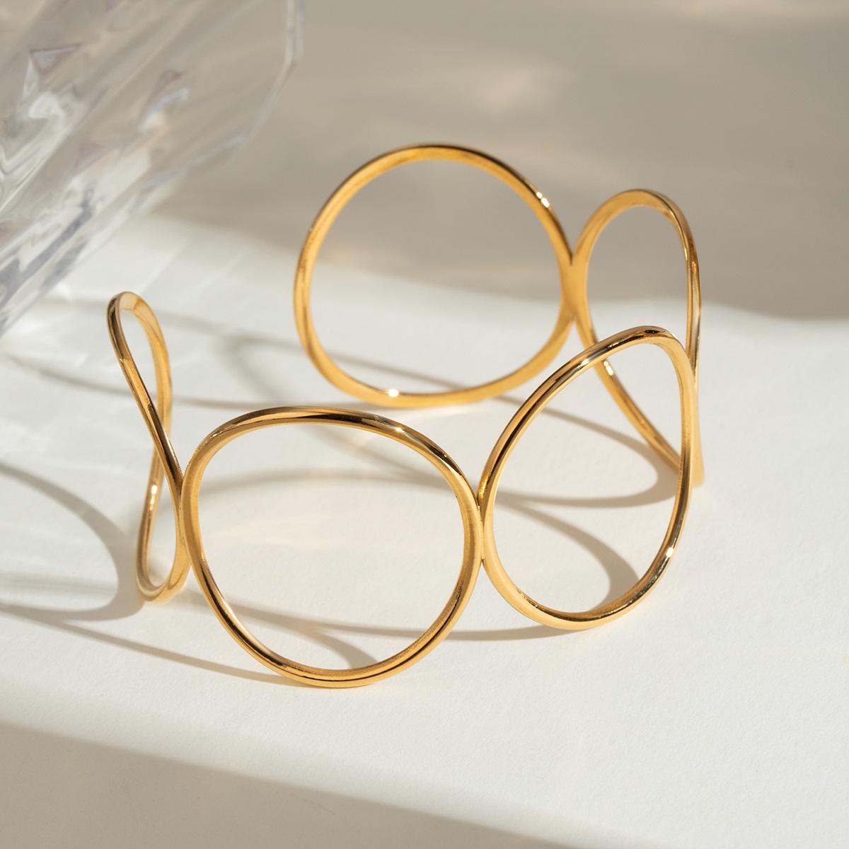 Pulseira europeia e americana simples irregular de aço titânio moda ouro 18k aço inoxidável simples oca grande círculo pulseira joia
