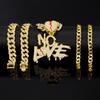 Europa e Estados Unidos transfronteiriços novo pingente de carta NO LOVE liga diamante completo pulseira corrente cubana corrente NK combinação de três peças