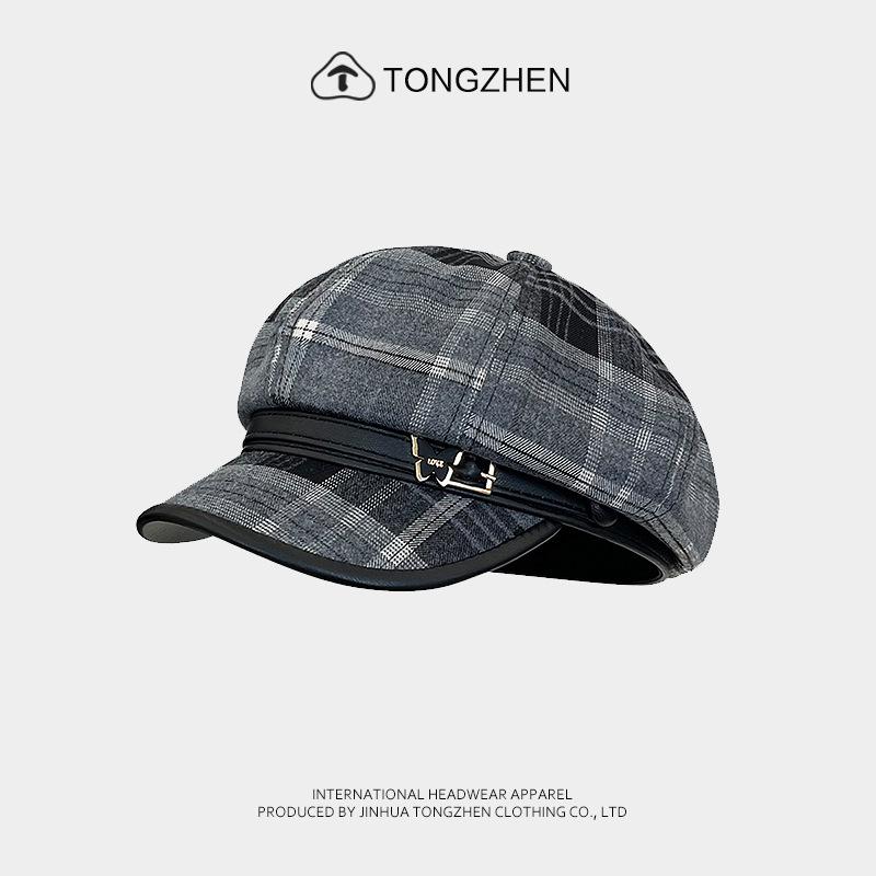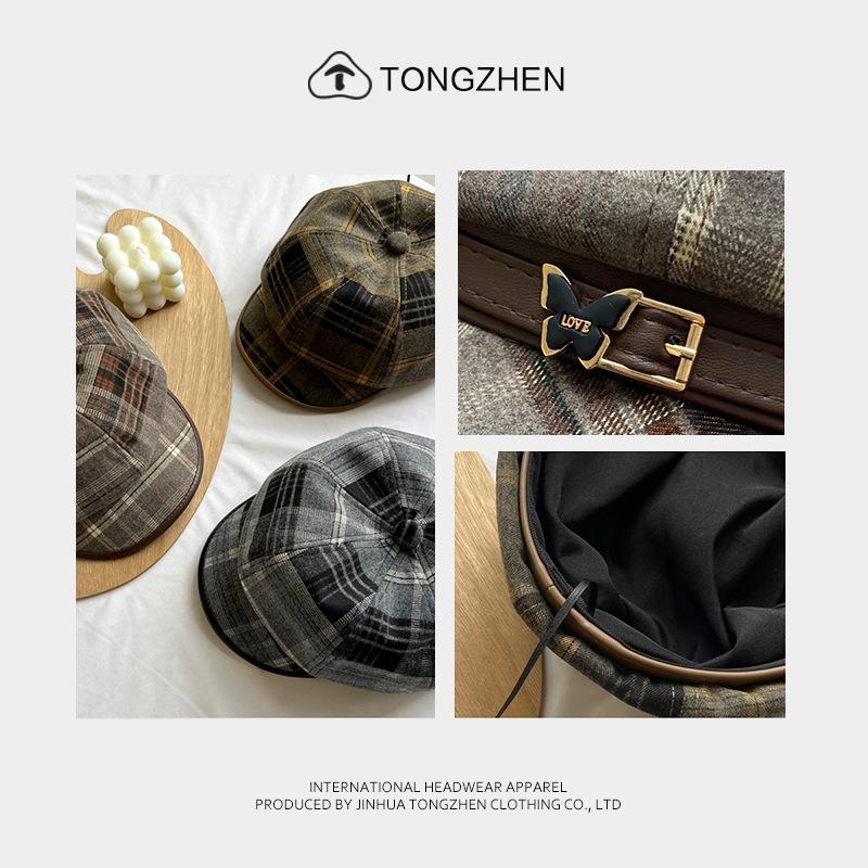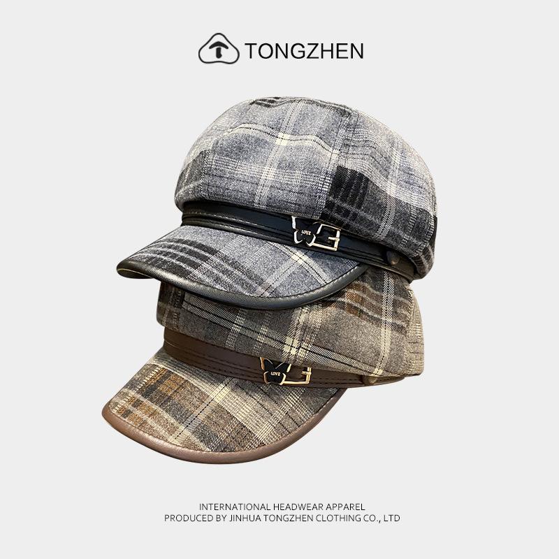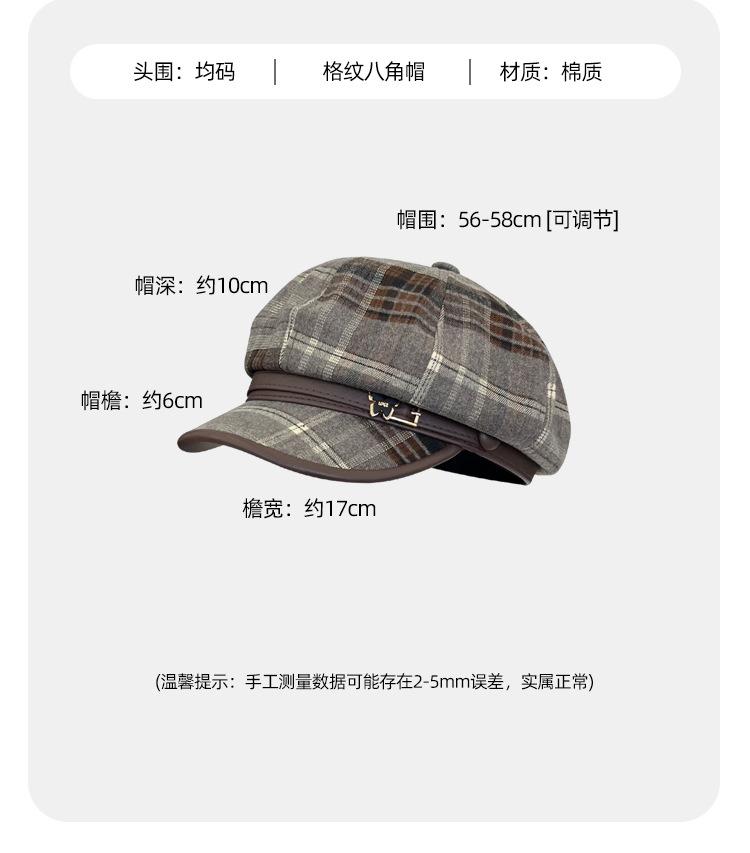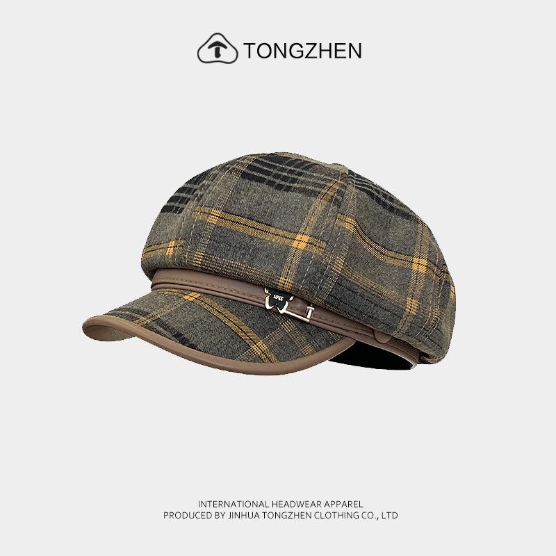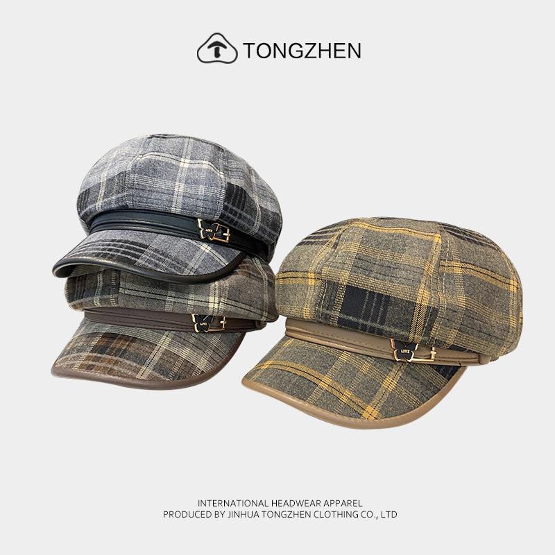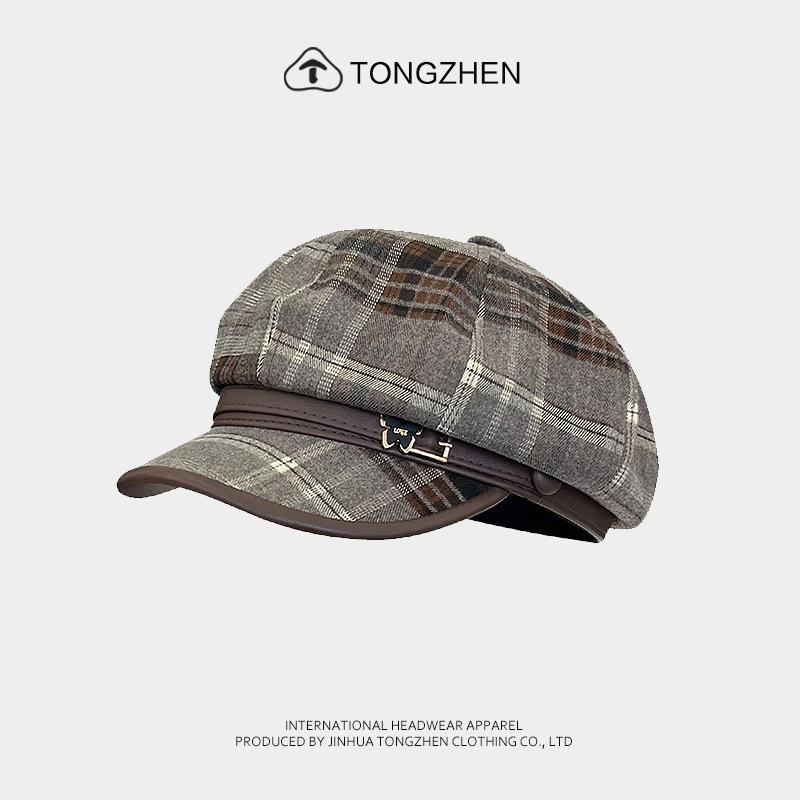 Chapéu xadrez retrô britânico octogonal, chapéu infantil de outono e inverno para estudantes, chapéu de jornaleiro, boina de pintor japonesa, rosto pequeno