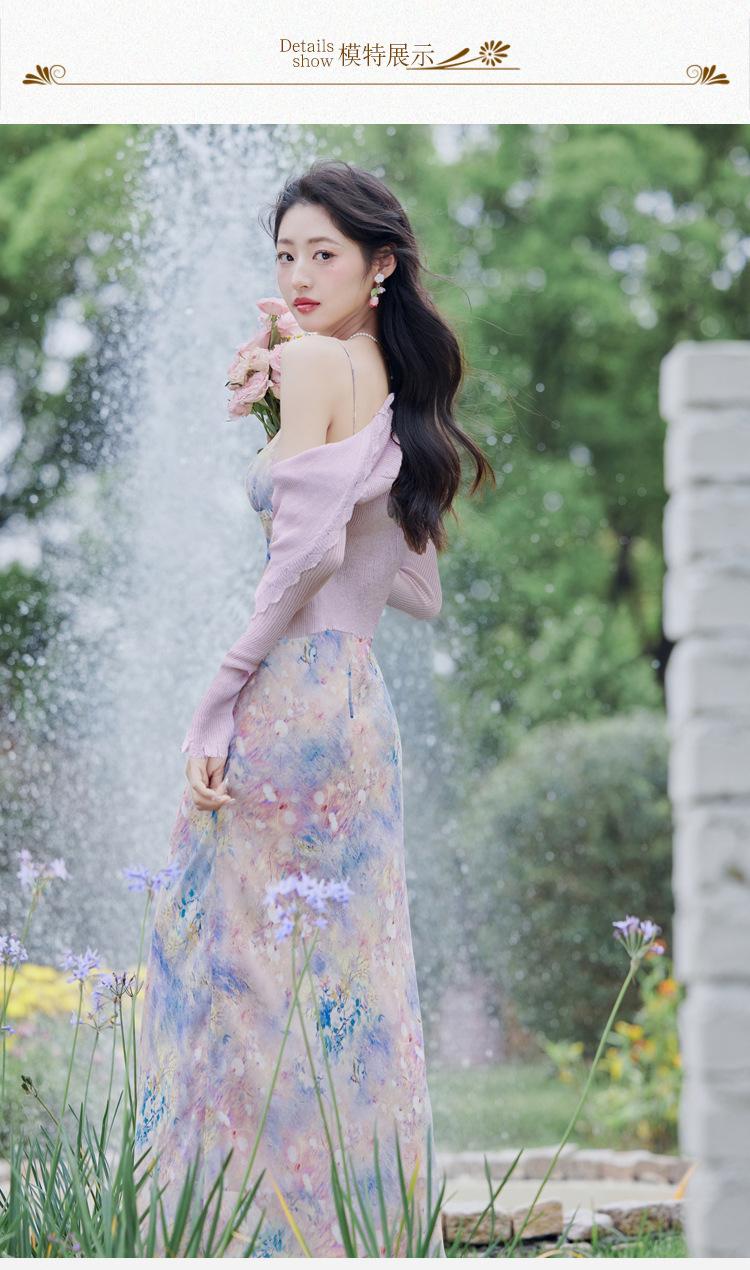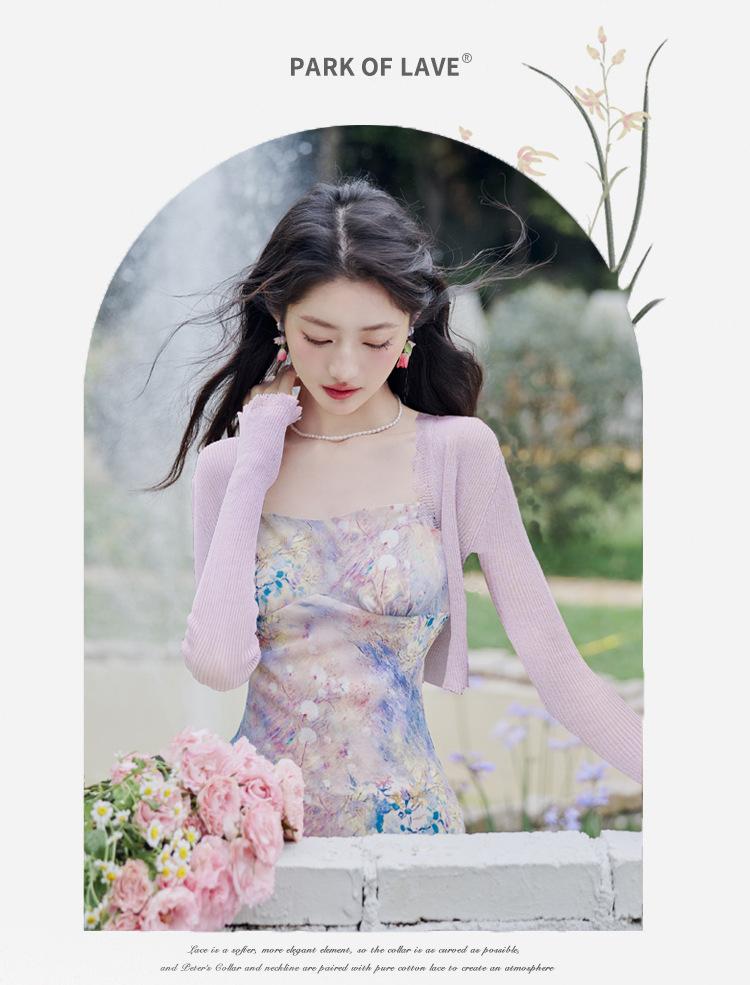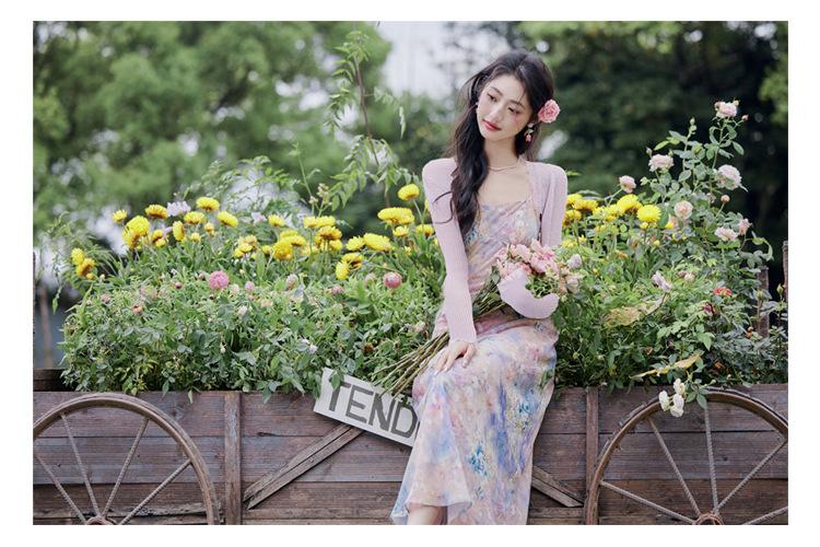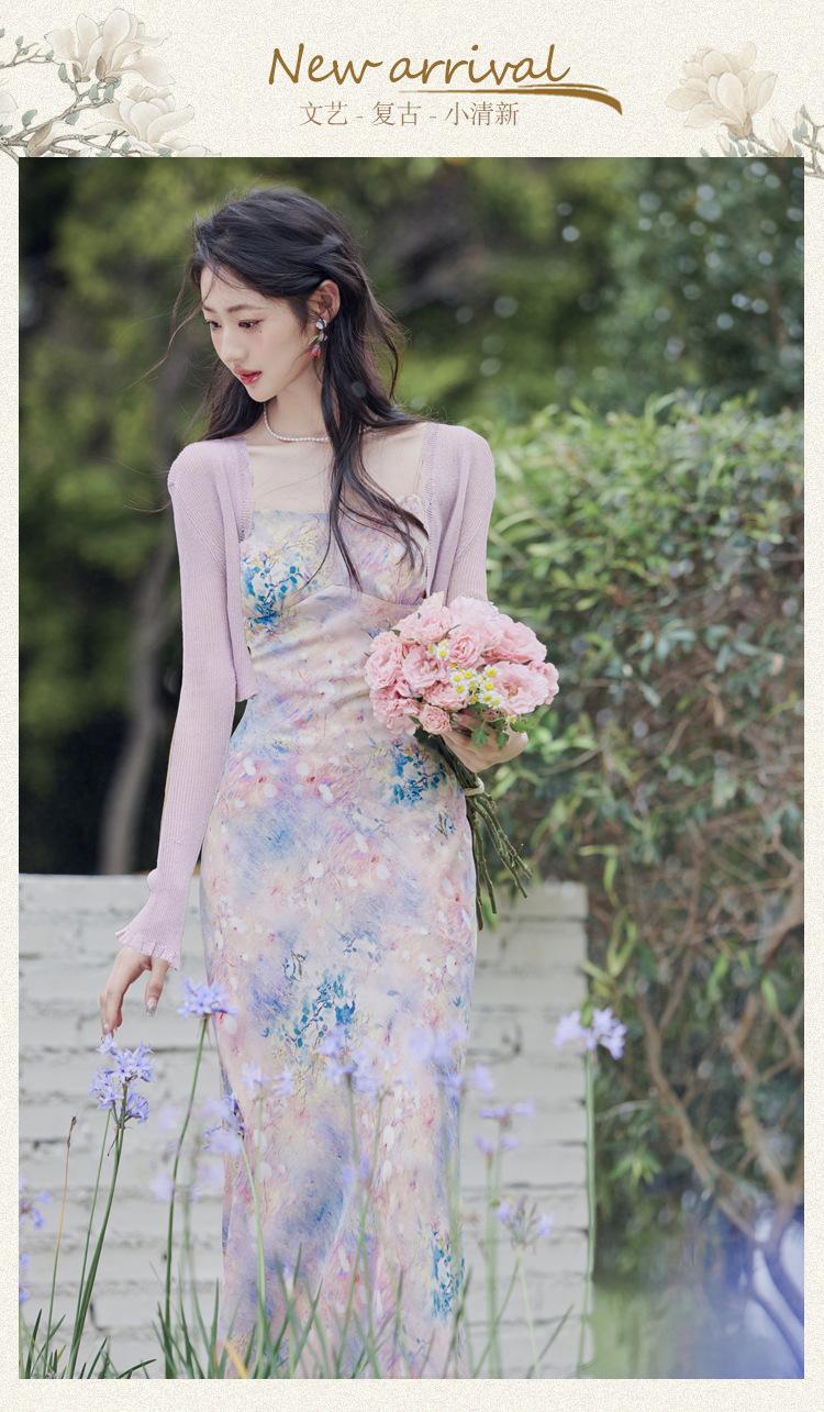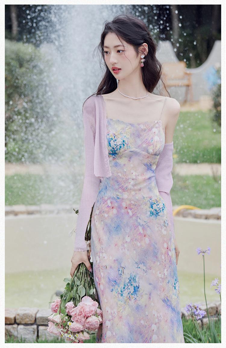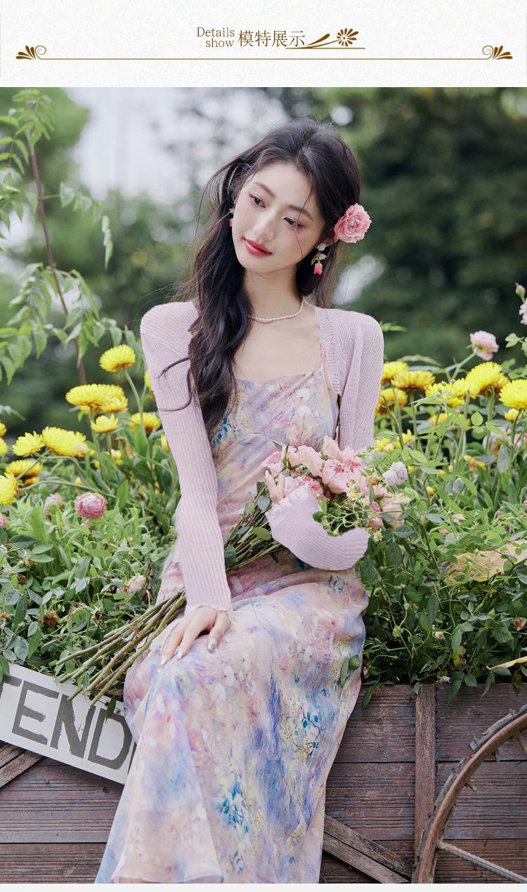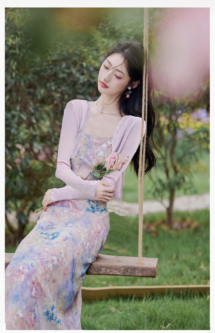 Liquidação: Vestido Camisola de Chiffon Suave e Sexy + Cardigã, Novo Vestido Romântico de Férias de Primavera/Verão Conjunto de Duas Peças