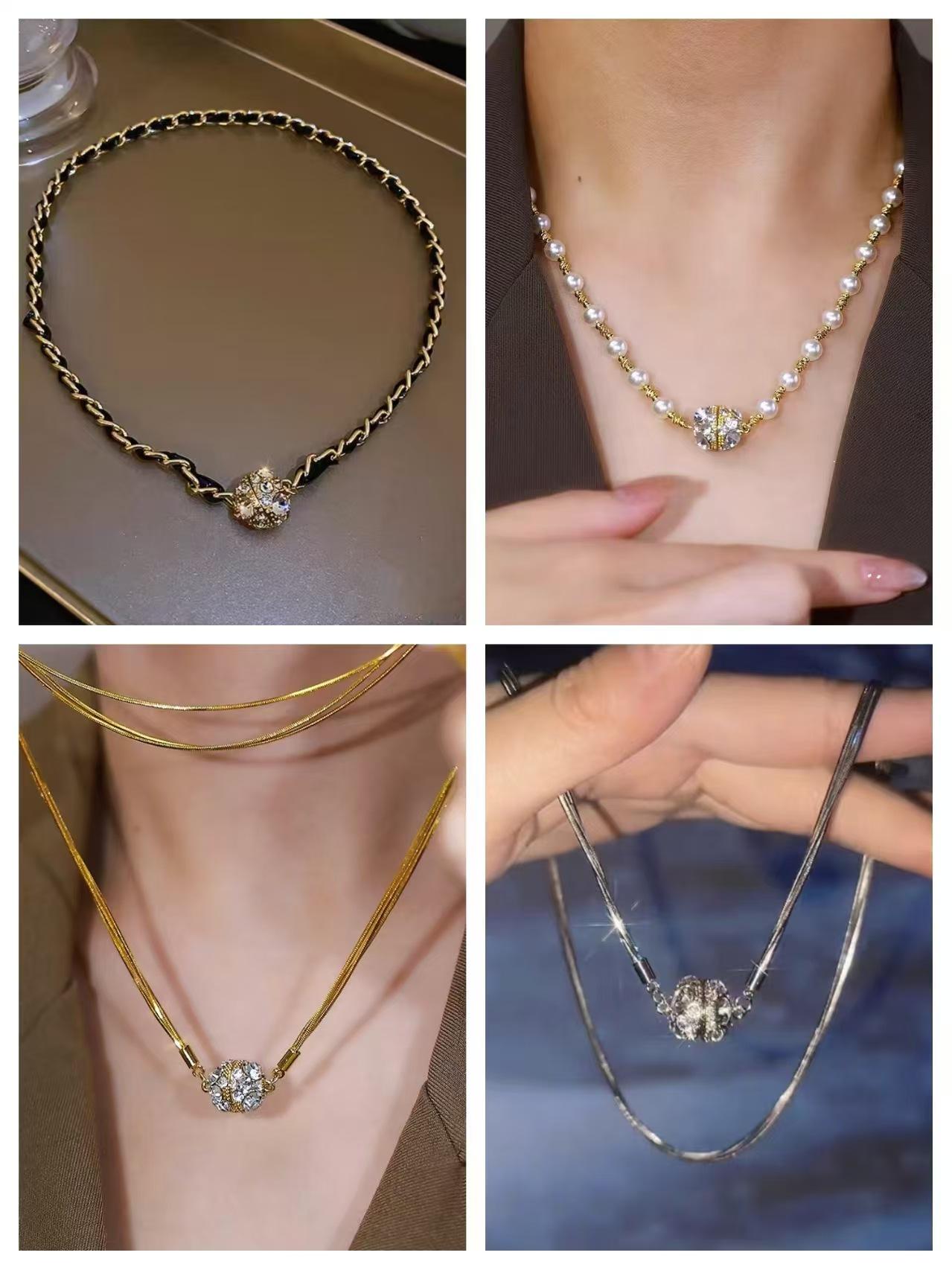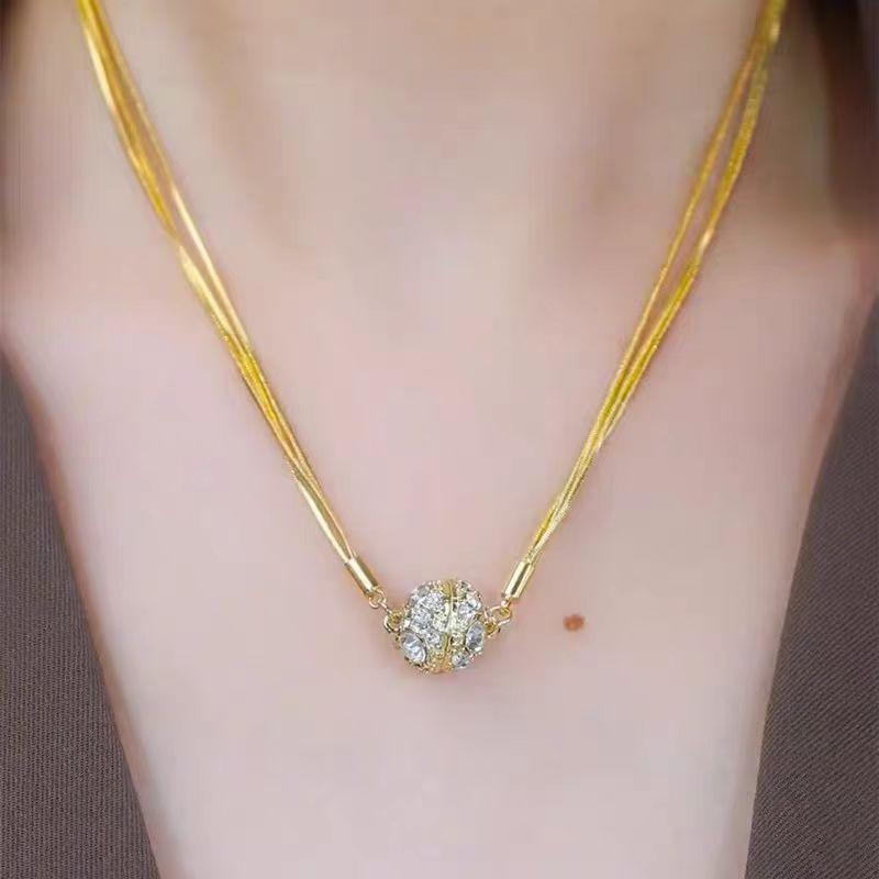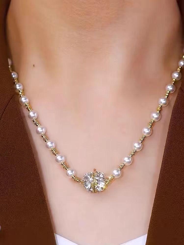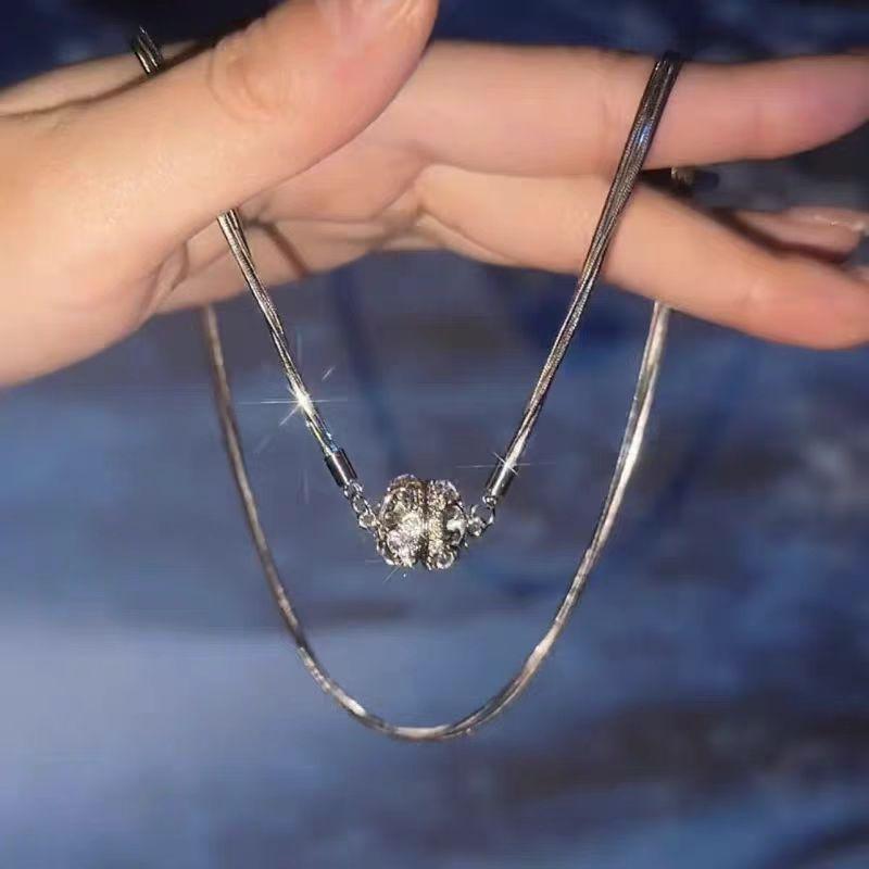 2024 Novo Estilo Luz Luxo Bola De Diamante Colar De Sucção Magnética Elegante All-match Titanium Steel Pérola Clavícula Colar Colar