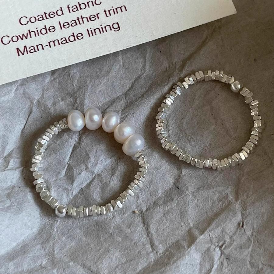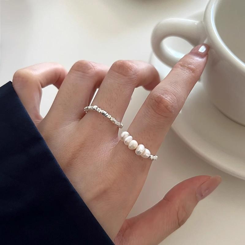 Anel de pérola de prata quebrada Design de nicho feminino Ins Fashion Nova moda Personalidade simples Anel de dedo de alta qualidade