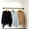 Estilo coreano Internet Celebridade Malha Moda All-match Borla Slim Elegante Nova Cor Sólida Lantejoulas Botão Cachecol Feminino Xale
