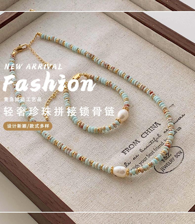 Colorido frisado Shoushan Pedra Natural Pérola de Água Doce Feito à Mão Colar Pulseira Entrada Nicho de Luxo All-match Clavícula Cadeia